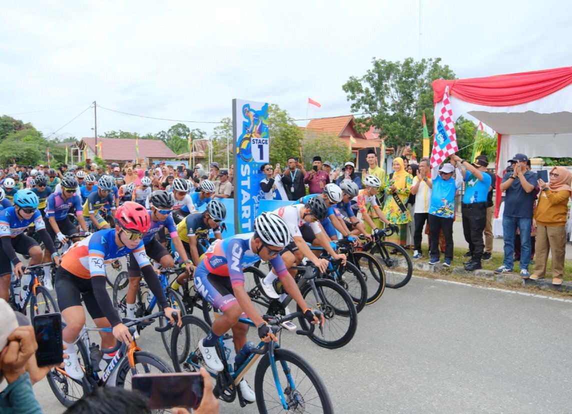 SIAK – Pada ivent Tour de Siak 2024 Terpantau sebanyak 65 pembalap sepeda (TDSi) mulai berpacu di rice pertama etape 1. Start dimulai didepan kantor Camat Sabak Auh dan finish di Jalan Sultan Ismail, Kecamatan Siak dengan jarak tempuh 90 Kilometer.