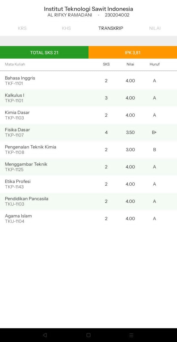 DURI – Seorang Mahasiswa Beasiswa SDM Sawit BPDP-KS DPD APKASINDO Kabupaten Bengkalis atas nama Al Rifky Ramadhani meraih nilai dengan jumlah IPK 3,81 atau Magna Cumlaude. Al Rifky sendiri merupakan mahasiswa Prodi Teknik Kimia Kampus ITSI, Medan.