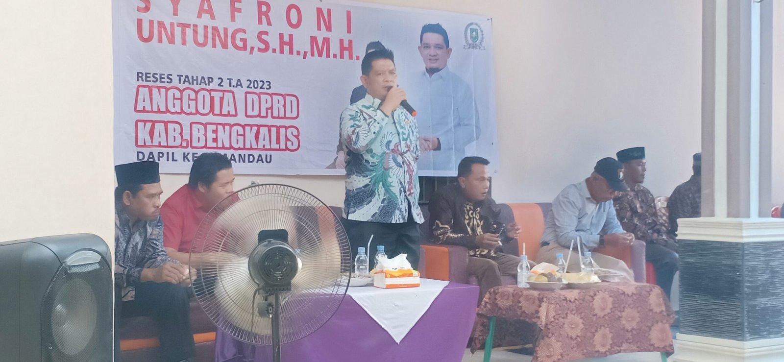 DURI – Anggota Legislatif (Aleg) DPRD Kabupaten Bengkalis Syafroni Untung, S.H., M.H menggelar kegiatan reses atau serap ketiganya di Jl. Tegar Pasiran RT 04 RW 10 Kelurahan Pematang Pudu Kecamatan Kecamatan Mandau pada Sabtu Sore (22/7/23).