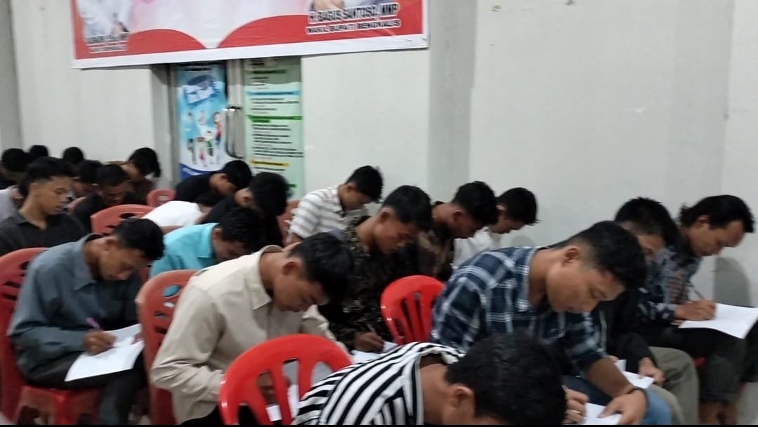 Pemateri Bimbel Session 1 Bapak Syahrizal Arif, S.Pd dan Sapra, SP dengan materi Motivasi dan Pengembangan Potensi Diri, dan Pengetahuan Kelapa Sawit. Juga turut memberikan materi Rahmat W. Hidayat, A.Md, CH dengan materi Psikotes.