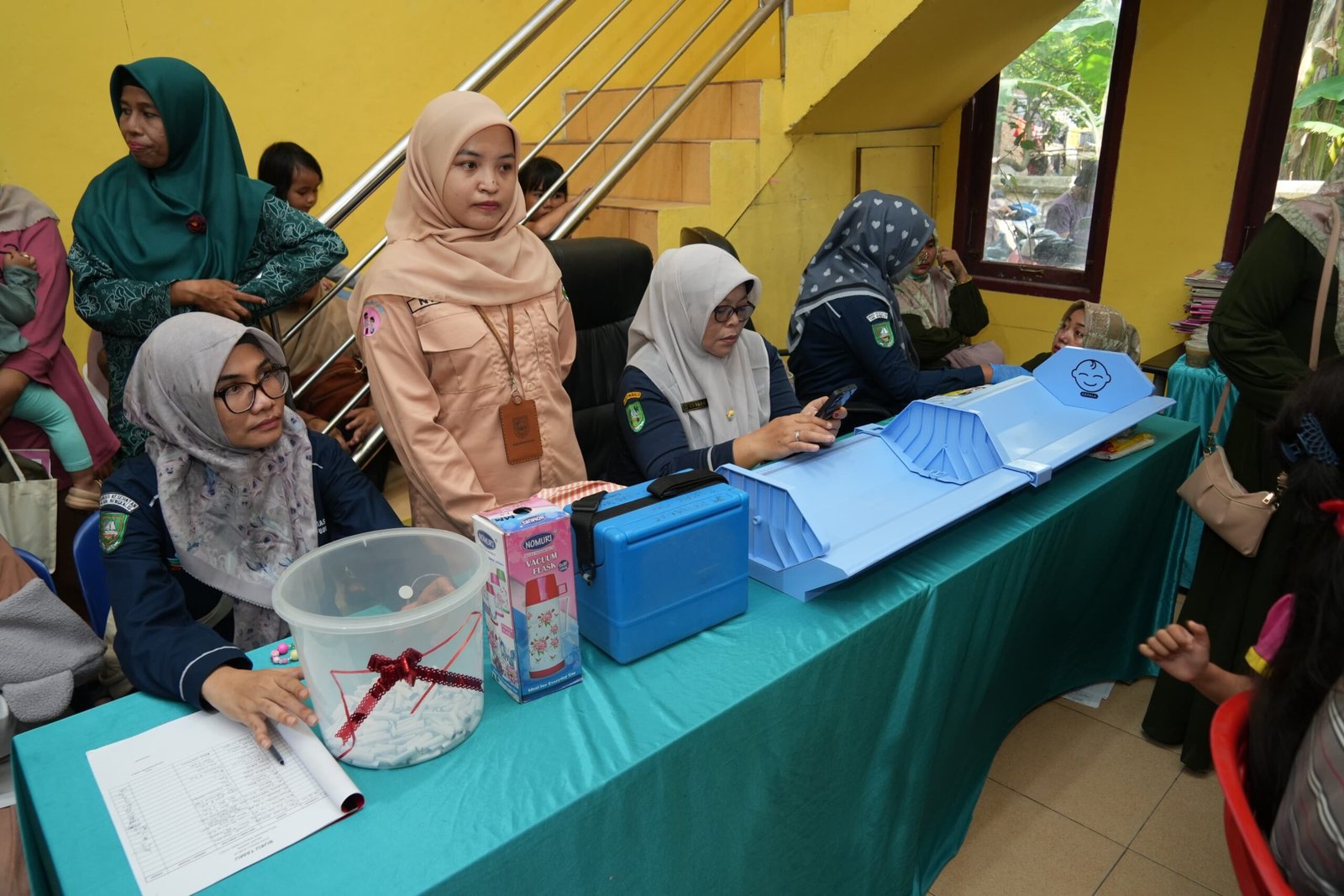 Giat yang dilaksanakan di Posyandu (Pos Pelayanan Terpadu) Sabar, Kelurahan Pematang Pudu (Aula Kantor Lurah Pematang Pudu) hari ini, diramaikan oleh Ibu-ibu yang membawa Bayi dan Balita mereka yang rutin melakukan kunjungan ke Posyandu Sabar setiap Bulannya. Jumlahnya pun lebih dari 50 pengunjung.