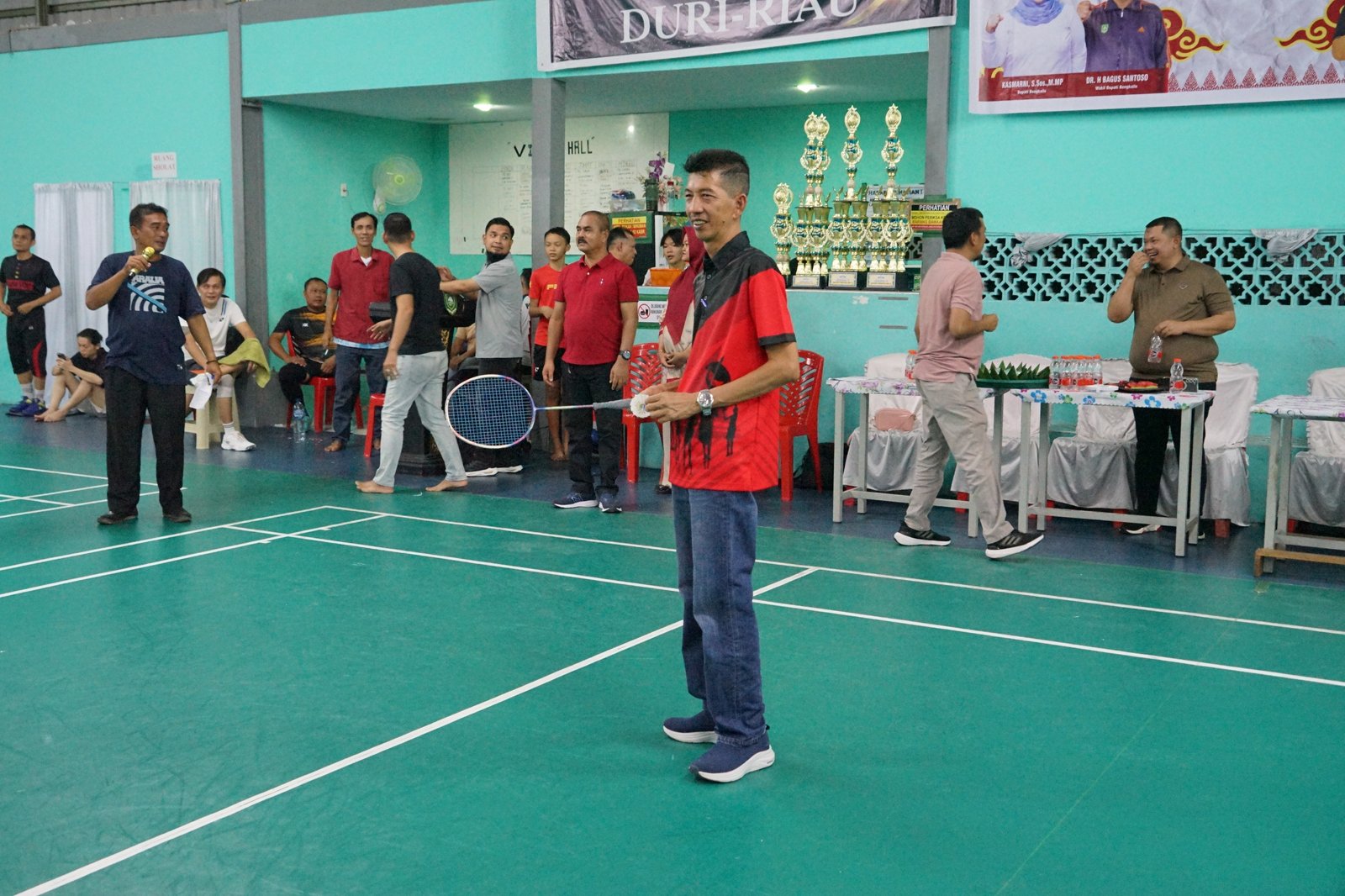 Dalam sambutannya, Camat Mandau berharap, dengan adanya event ini dapat melahirkan atlet-atlet bulu tangkis berprestasi dan berbakat yang bisa kita banggakan dimasa yang akan datang.