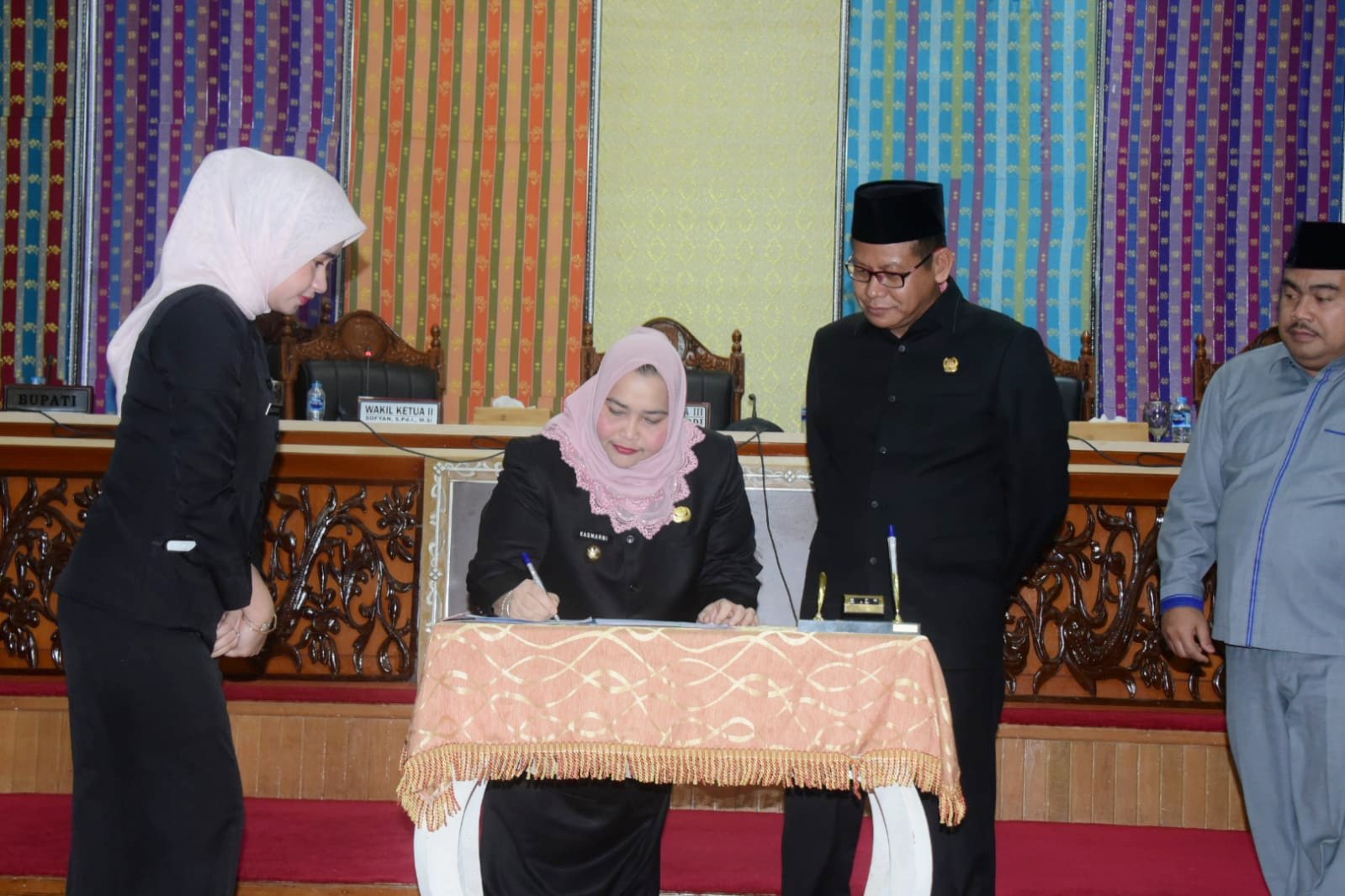 BENGKALIS – Bupati Bengkalis Kasmarni mengucapkan Terima kasih kepada pimpinan dan anggota DPRD Kabupaten Bengkalis atas pengambilan keputusan Peraturan Daerah (Perda) APBD Perubahan tahun 2023.
