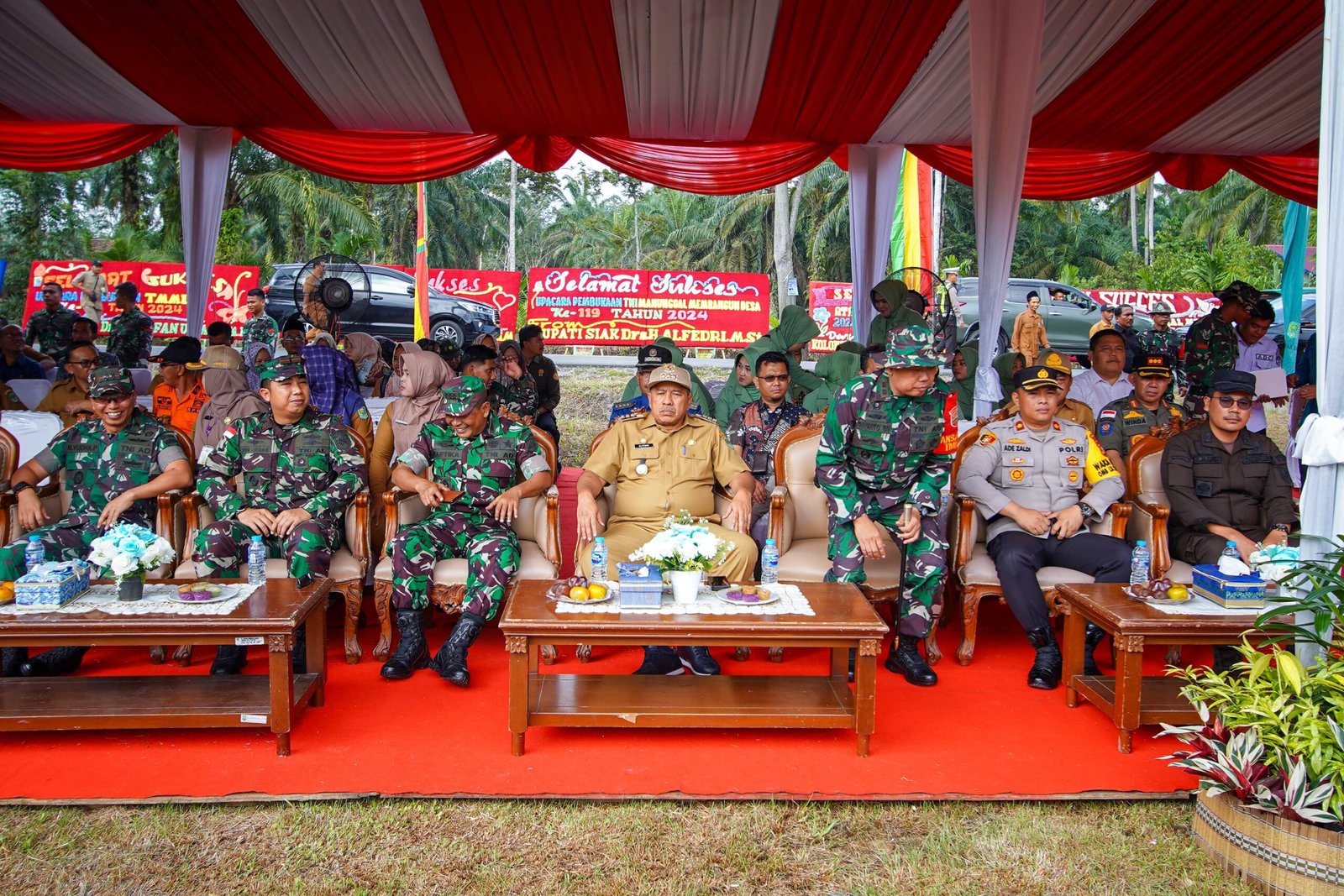Bupati Siak Alfedri terlebih dahulu mengucapkan terimakasih kepada Danrem 031/WB dan Dandim 0322/Siak, yang telah menunjuk Kabupaten Siak sebagai Lokasi pelaksanaan TMMD ke – 119 tahun 2024, yang dilaksanakan di Kampung Sungai Tengah, Kecamatan Sabak Auh.