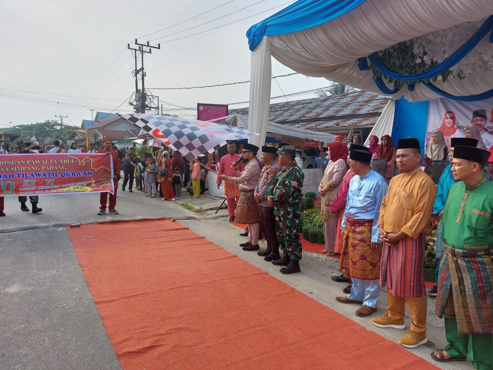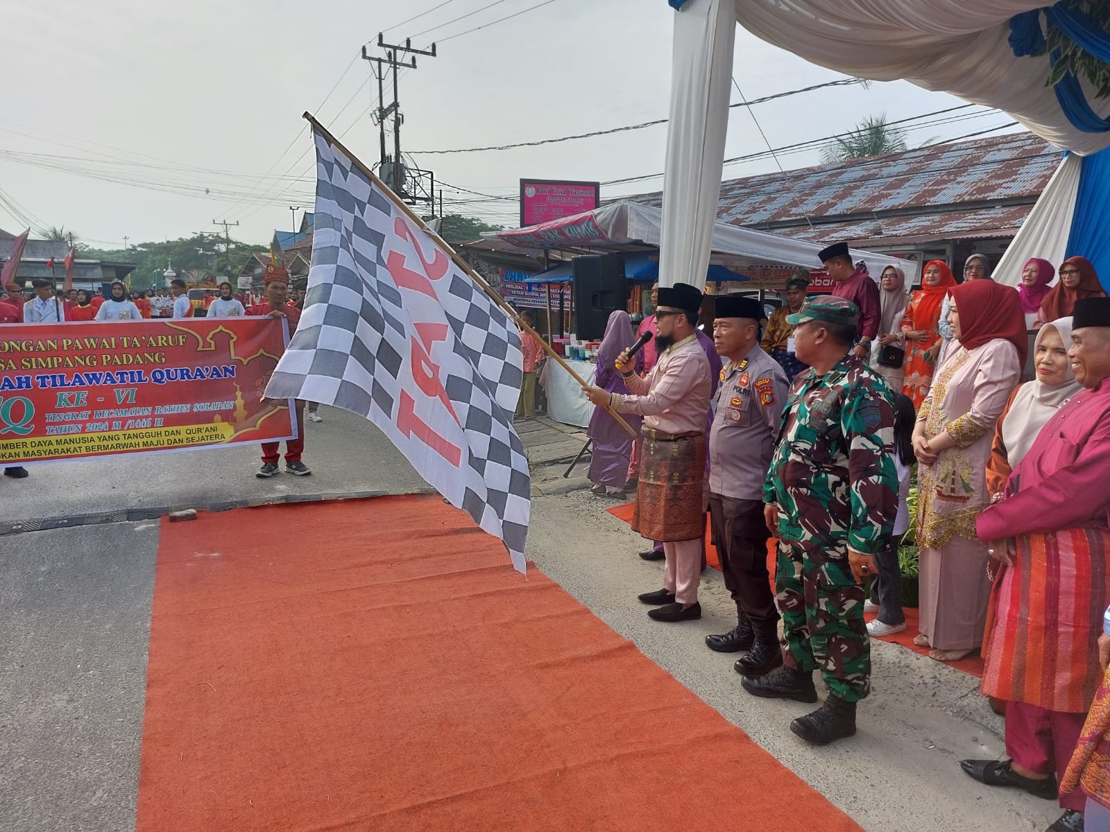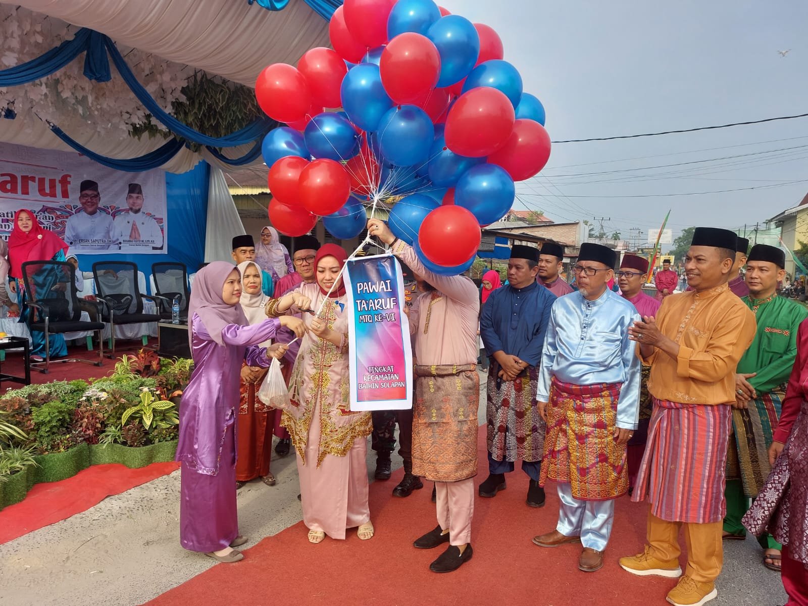 Pelepasan ribuan peserta pawai Ta’aruf MTQ ke-VI ditandai dengan pelepasan balon ke udara oleh Ketua TP PKK Sari Kartika dan dilanjutkan dengan pengangkatan bendera star oleh Camat Bathin Solapan Muhammad Rusydy MR, S.STP,M.Si ( Red/dpc)