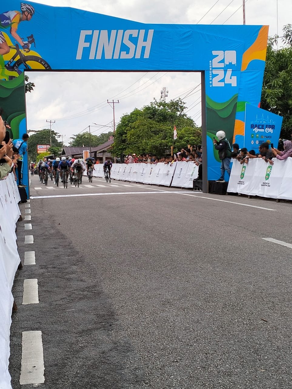 SIAK – Pembalap sepeda asal negeri Jiran Malaysia Mohammad Izzat Hilmi Halil bernomor punggung 62 dari tim Malaysia Pro Cycling (MPC) berhasil taklukkan race final etape 3 Tour de Siak 2024, menjadi yang tercepat menyentuh garis finish dengan catatan waktu 2 jam 58 menit 21 detik.