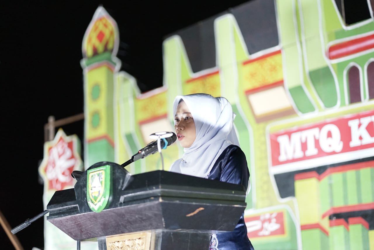 Penjabat Kepala Desa (PJ Kades) Air Kulim, Suryati, S. Sos saat memberikan sambutan memberikan apresiasi serta penghargaan setinggi-tingginya kepada Panitia, Perangkat Desa dan seluruh yang terlibat dalam pelaksanaan MTQ ini.
