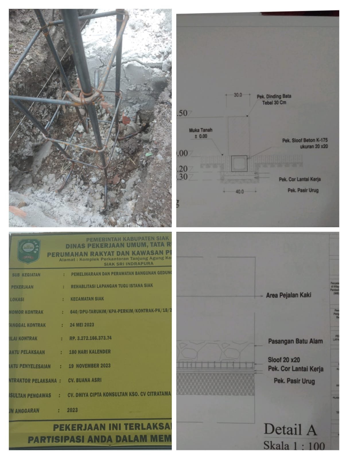 “Kami punya dokumen Spek gambar perencanaannya. Proyek Rehabilitasi Lapangan Tugu Istana Siak tersebut salah satu pekerjaannya adalah pembuatan pagar lapangan tugu, tepatnya di depan Istana Kebanggaan masyarakat Kabupaten Siak di Kecamatan Siak Kabupaten Siak, adapun Proyek tersebut dikerjakan oleh CV. Buana Asri sebagai Kontraktor Pelaksana dan Konsultan Pengawas CV. Dhiya Cipta Konsultan KSO. CV Citratama, namun diduga pekerjaannya asal jadi saja.