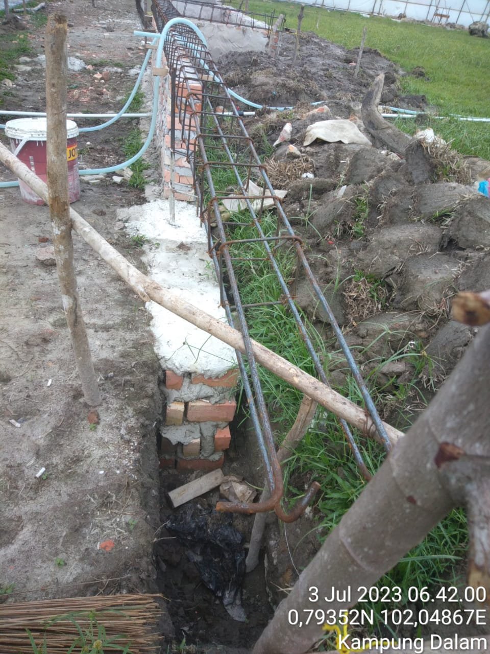 Seharusnya ada pasir urugnya itu, tidak langsung dipasang batu bata dan juga tidak langsung besi cakar ayam itu langsung ditempel ketanah seperti itu,