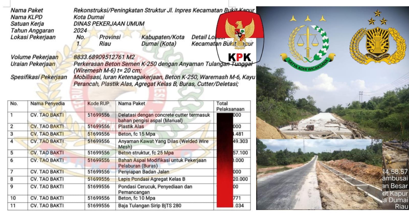 DUMAI – Mencuatnya dugaan adanya indikasi korupsi pada Kegiatan Proyek di Dinas Pekerjaan Umum dan Penataan Ruang (PUPR) Kota Dumai karena diduga salah satu proyek terkesan dikerjakan asal jadi, salah satunya Proyek Konstruksi Jalan Impres dan
