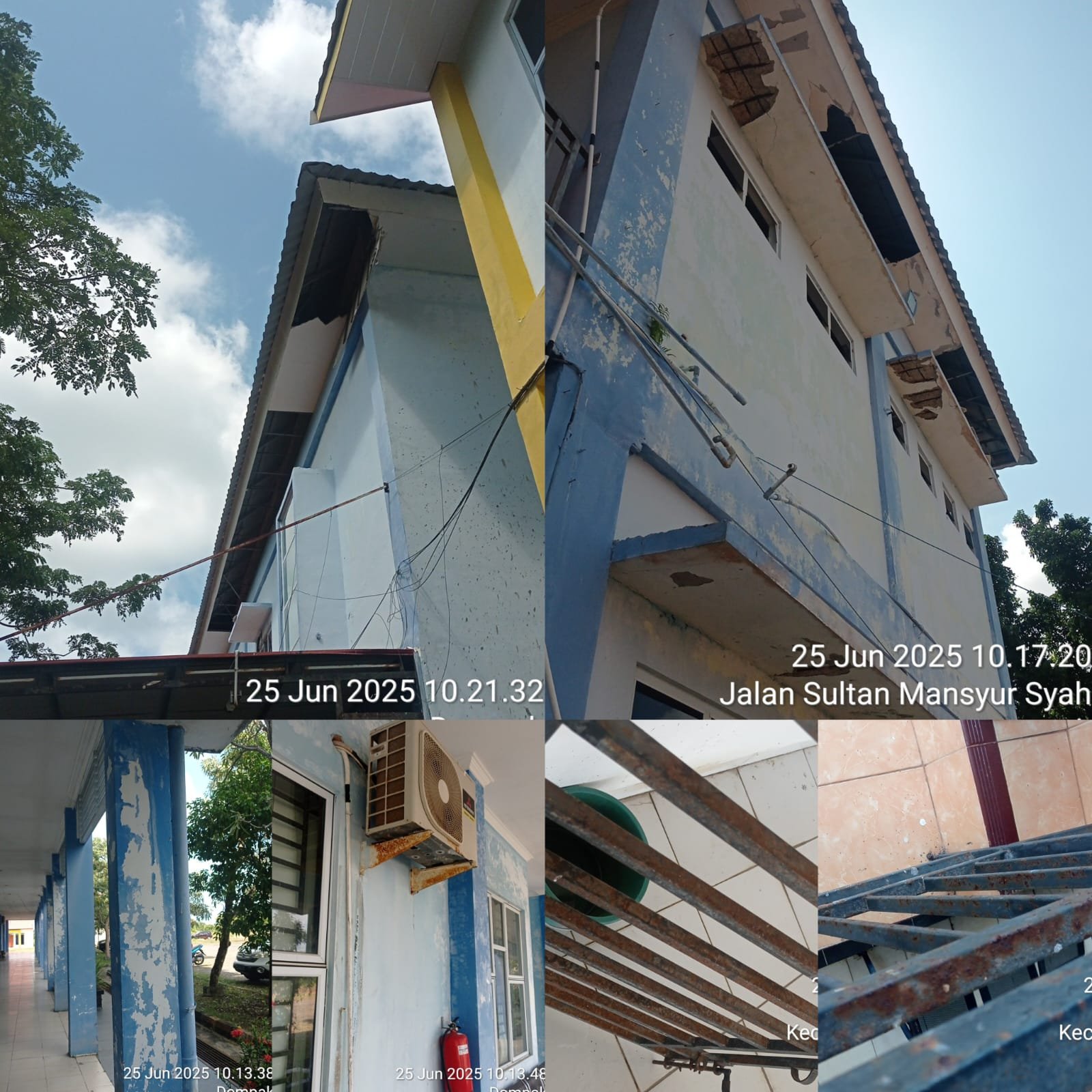 “Plafon roboh, pintu masuk ke ruang sekretaris sudah patah, tralis tangga berkarat, dan cat gedung di bagian belakang sudah pudar. Ini jelas tak sebanding dengan nilai anggaran yang luar biasa besar,” tegas Pardamean kepada awak media. (25/6/2025)