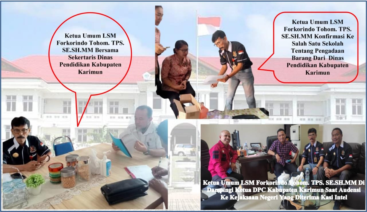 “Kami dari LSM Forkorindo melakukan Audensi Ke pihak Intel Kejaksaan Negeri Kabupaten Karimun tentang anggaran dinas pendidikan yang diduga sudah mempergunakan anggaran yang tidak sesuai dengan fakta di lapangan, maka dalam jangka waktu dekat ini tim akan melakukan pelaporan secara resmi ke pihak kejaksaan Negeri Kabupaten Karimun,” tutup Tohom  (Redaksi)