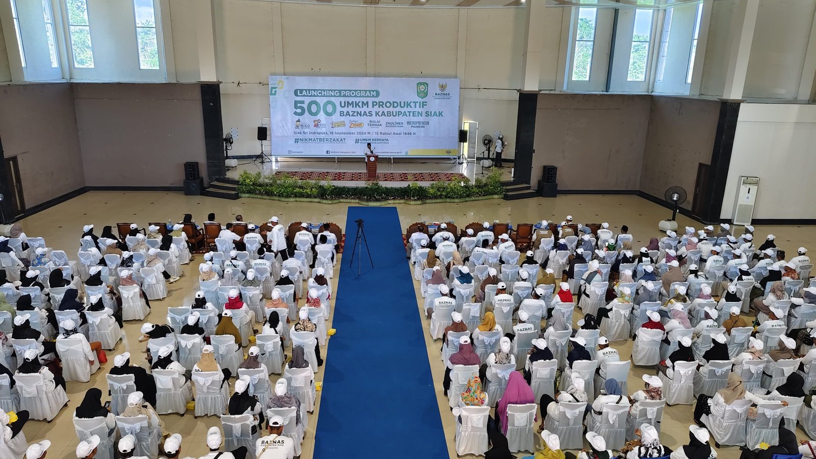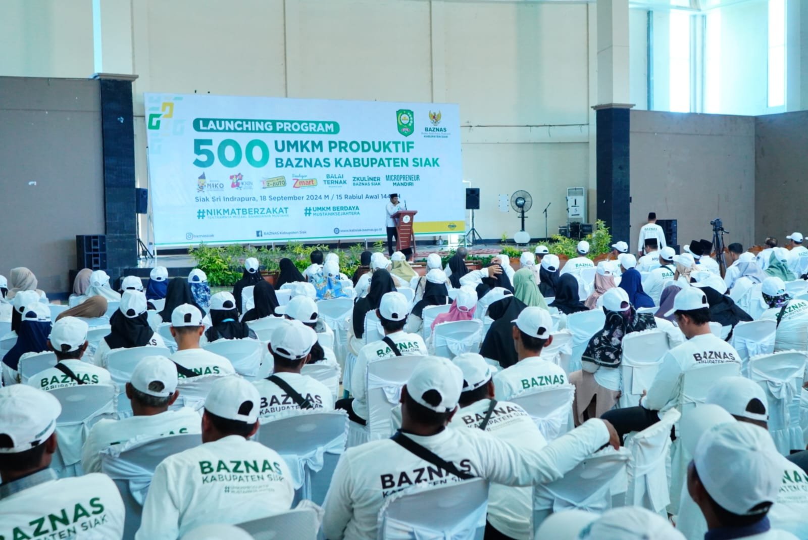 SIAK – Badan Amil Zakat Nasional (BAZNAS) Kabupaten Siak melaunching program UMKM Produktif sebanyak 500 penerima manfaat di gedung kesenian Kabupaten Siak. Rabu, 18/09/2024.