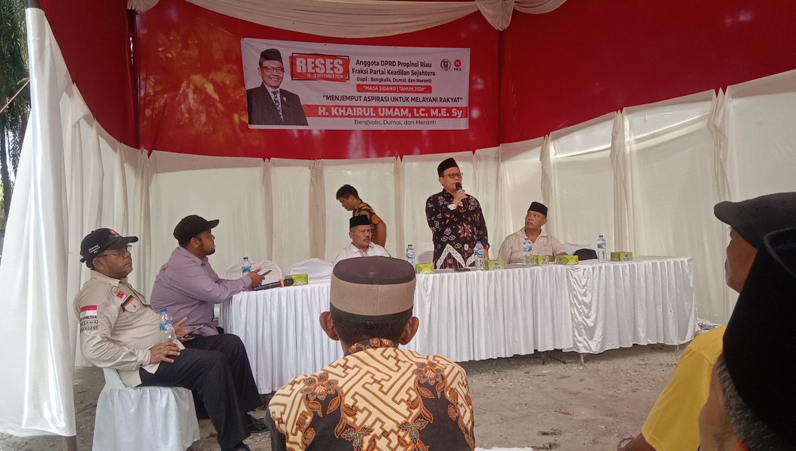 “Bapak-bapak dan ibu-ibu, kehadiran saya disini adalah untuk menampung aspirasi masyarakat. Nah dalam hal ini silahkan bapak-bapak dan ibu-ibu sampaikan kepada saya aspirasi apa yang ingin disampaikan. Nantinya aspirasi ini akan saya sampaikan di DPRD Provinsi Riau,”jelas laki-laki yang juga dipanggil ustaz H. Khairul Umam tersebut.
