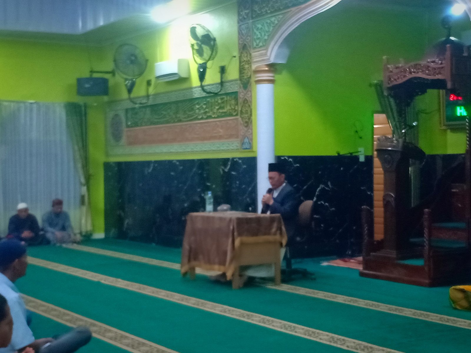 Sejumlah jemaah Masjid Mukhlisin hadir dalam kegiatan peringatan Maulid Nabi Muhammad SAW di masjid tersebut untuk mendengarkan tausiyah yang disampaikan oleh laki-laki yang lebih akrab dipanggil ustadz KU ini.