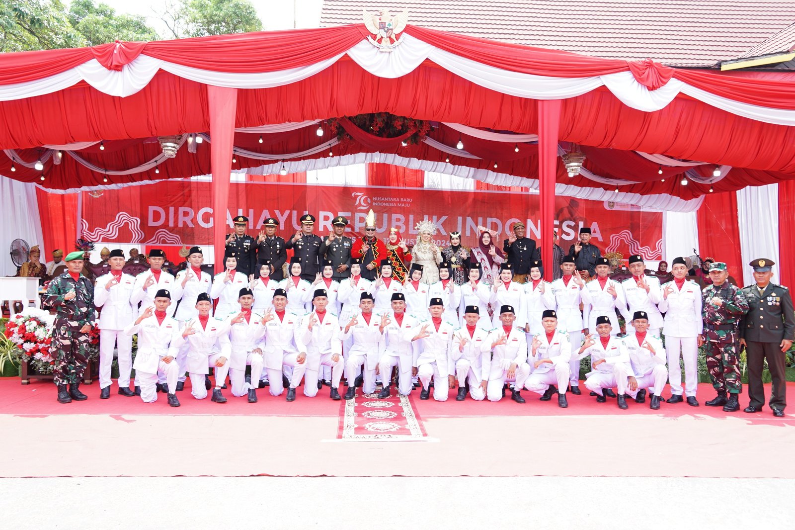 Pasukan Pengibar Bendera (PASKIBRA) yang bertugas pada upacara pengibaran bendera hari ini adalah perwakilan putra-putri terbaik dari SMA dan SMK se-Kecamatan Mandau dan telah mempersiapkan diri dengan latihan dari bulan Juli 2024.