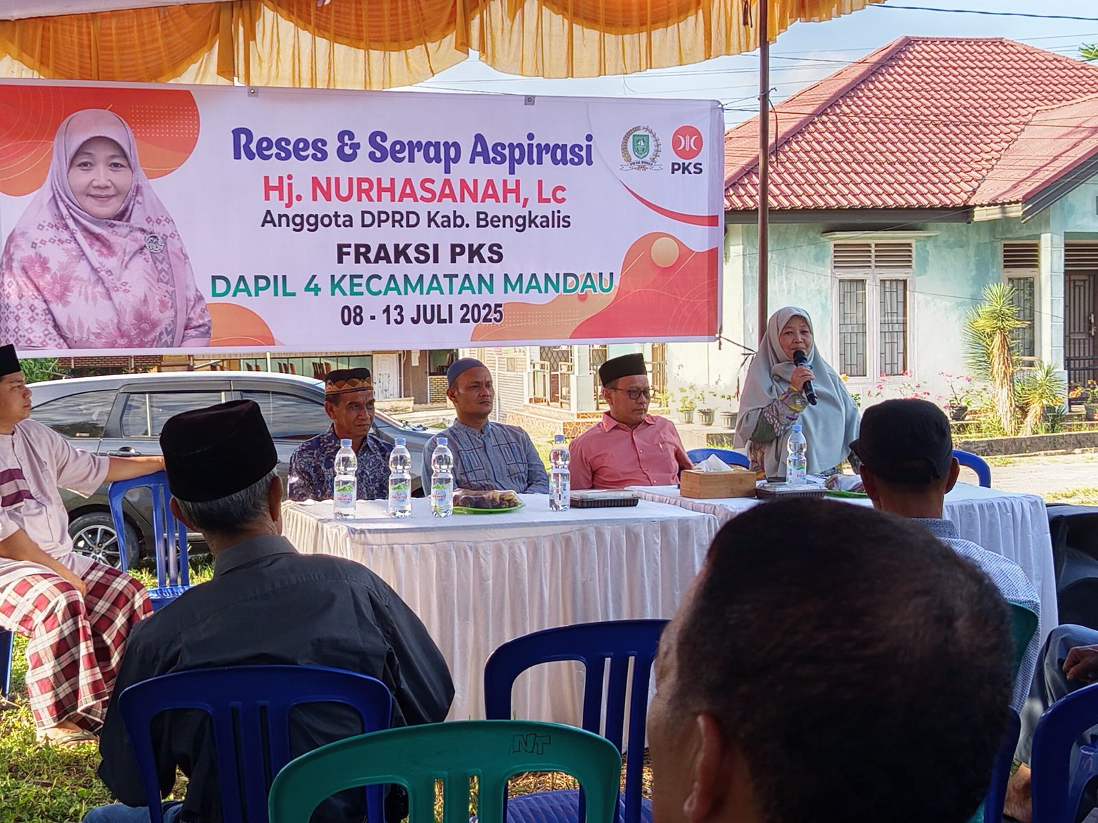 DURI – Melanjutkan reses selanjutnya, Anggota DPRD Kabupaten Bengkalis dari Partai PKS Hj. Nurhasanah, Lc kembali menggelar kegiatan reses atau serap aspirasi masyarakat. Dimana kali ini kegiatan dilakukan di Jalan Giyan 5 Kelurahan Pematang Pudu Kecamatan Mandau. Kegiatan yang dilaksanakan pada Rabu sore (9/7) tersebut dihadiri juga oleh Anggota DPRD Provinsi Riau dari Partai PKS H. Khairul Umam, Lc., M.E., Sy, ketua RT, Ketua RW dan sejumlah tamu undangan lainnya yang menghadiri kegiatan reses tersebut.