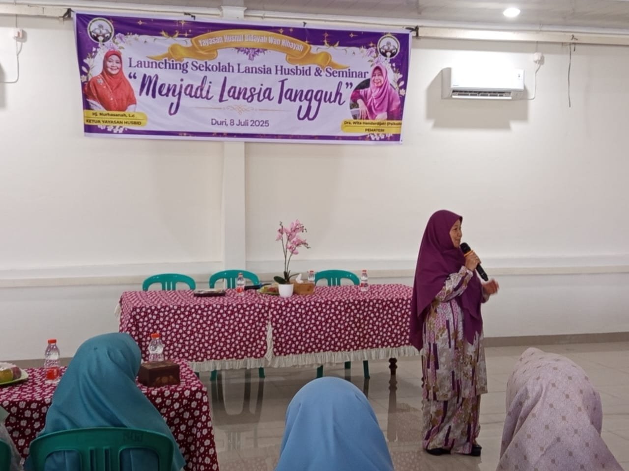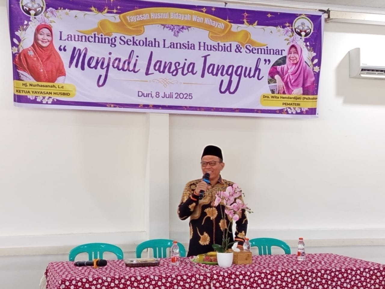 DURI – Berlokasi di aula Masjid Nur Iman yang terletak di Jalan Melati Kelurahan Balik Alam , Yayasan Husnul Bidayah Wan Nihayah menggelar kegiatan Launching Sekolah Lansia Husbid sekaligus Seminar.