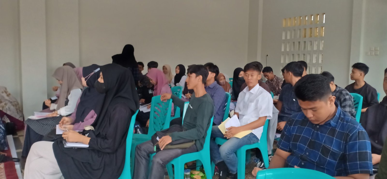 Tampak sejumlah 44 calon peserta yang begitu serius dalam mengikuti materi yang diberikan oleh pemateri Bang Samda. Pengetahuan dasar sawit yang diberikan merupakan pengetahuan yang mengenal sawit, ciri khas dan juga teknik dasar pemupukan. Tepat pada pukul 10.00 wib, setelah sisen satu, sejumlah peserta seleksi istirahat sejenak.