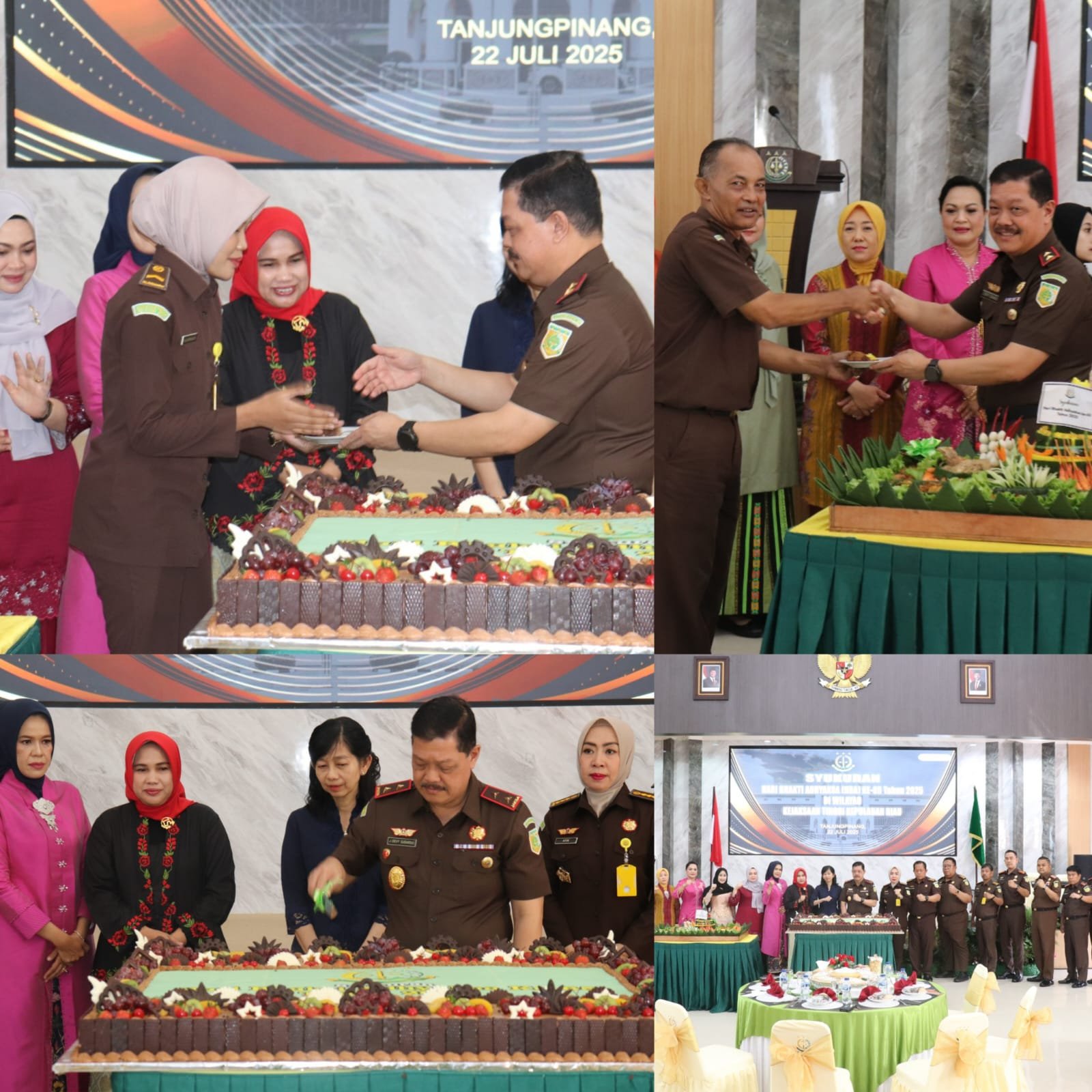 TANJUNG PINANG(KEPRI) ,– Kejaksaan Tinggi Kepulauan Riau menyelenggarakan syukuran dalam rangka memperingati Hari Bhakti Adhyaksa (HBA) ke-65 Tahun 2025 di Aula Sasana Baharuddin Lopa Kejati Kepri, Tanjungpinang. Acara ini berlangsung secara sederhana namun tetap khidmat, dihadiri oleh Kepala Kejaksaan Tinggi Kepulauan, J. Devi Sudarso, Wakajati Kepri, para Asisten, Kabag TU, Koordinator, Kepala Kejaksaan Negeri dan Kepala Cabang Kejaksaan Negeri, Kepala Seksi dan seluruh Pegawai pada Kejaksaan Tinggi Kepulauan Riau, serta pengurus Ikatan Adhyaksa Dharmakarini Wilayah Kepulauan Riau, Selasa (22/07/2025).