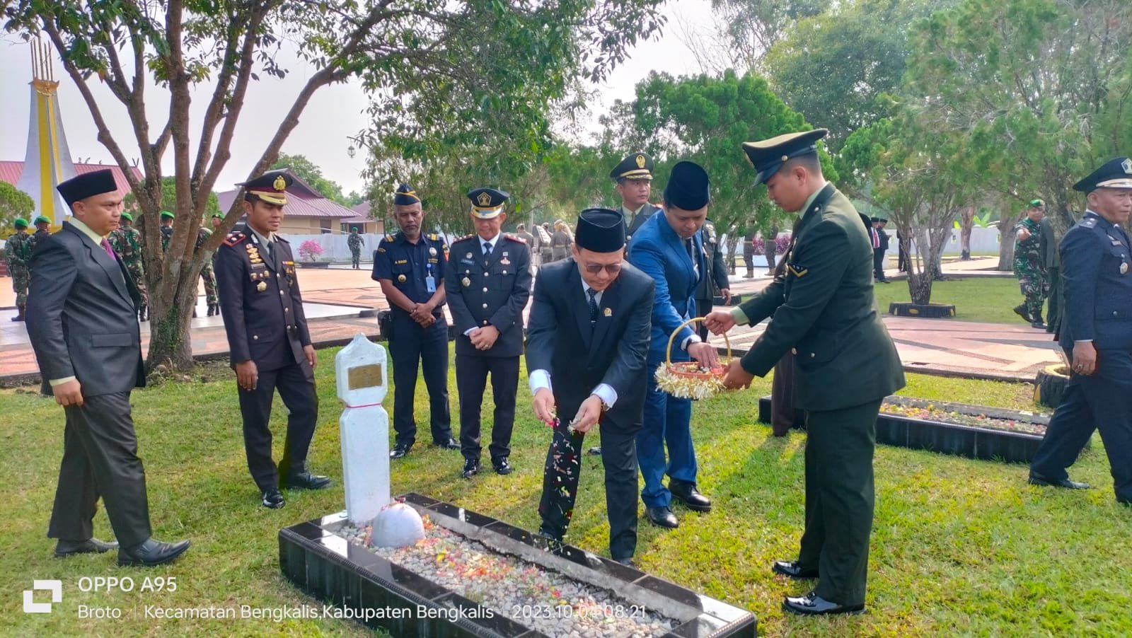 BENGKALIS – Ketua DPRD Kabupaten Bengkalis H. Khairul Umam Lc, ME.Sy, menghadiri undangan kegiatan ziarah nasional dalam rangka Peringatan HUT Ke-78 TNI, di Taman Makam Pahlawan Kesuma Kesatria, Kabupaten Bengkalis-Riau. Rabu (04/10/2023).
