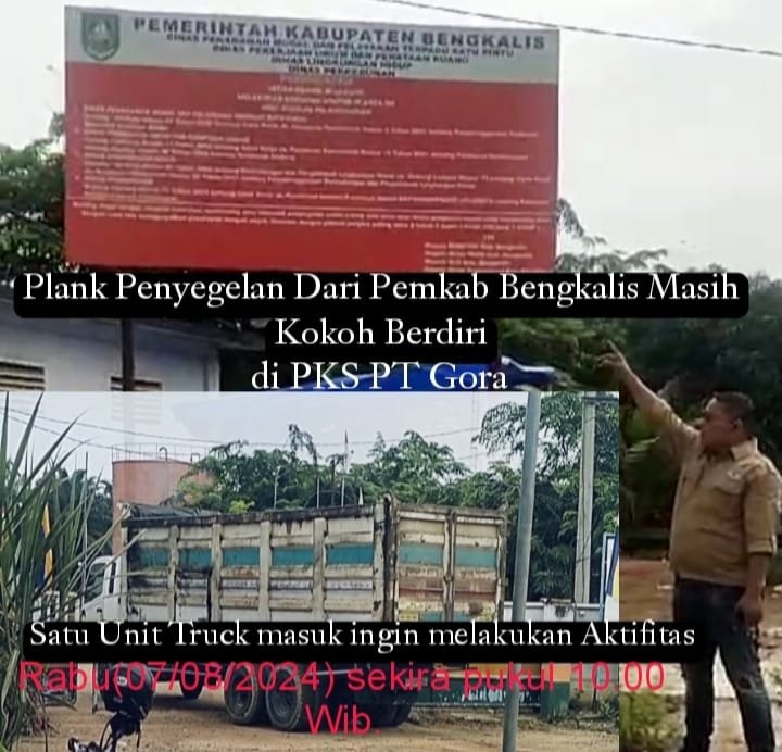 Pada November 2022 lalu, Pemerintah Kabupaten Bengkalis melalui 4 Instansi, yaitu DPMPTSP, Disnaker, DLH dan PUPR telah mengambil tindakan tegas terhadap PKS PT Gora dengan dipasangnya plank Penghentian operasional pabrik karena tidak memiliki izin lengkap.