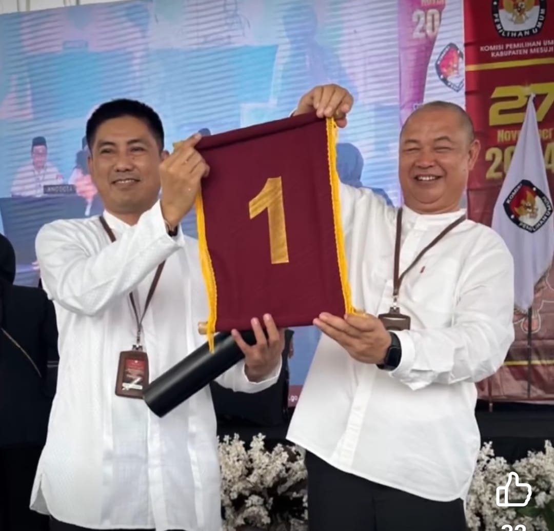 MESUJI– Komisi Pemilihan Umum Daerah (KPUD) Kabupaten Mesuji melakukan Pengundian dan Penetapan nomor urut Pasangan Calon Bupati dan Wakil Bupati Kabupaten Mesuji Tahun 2024 senin 23/10/24