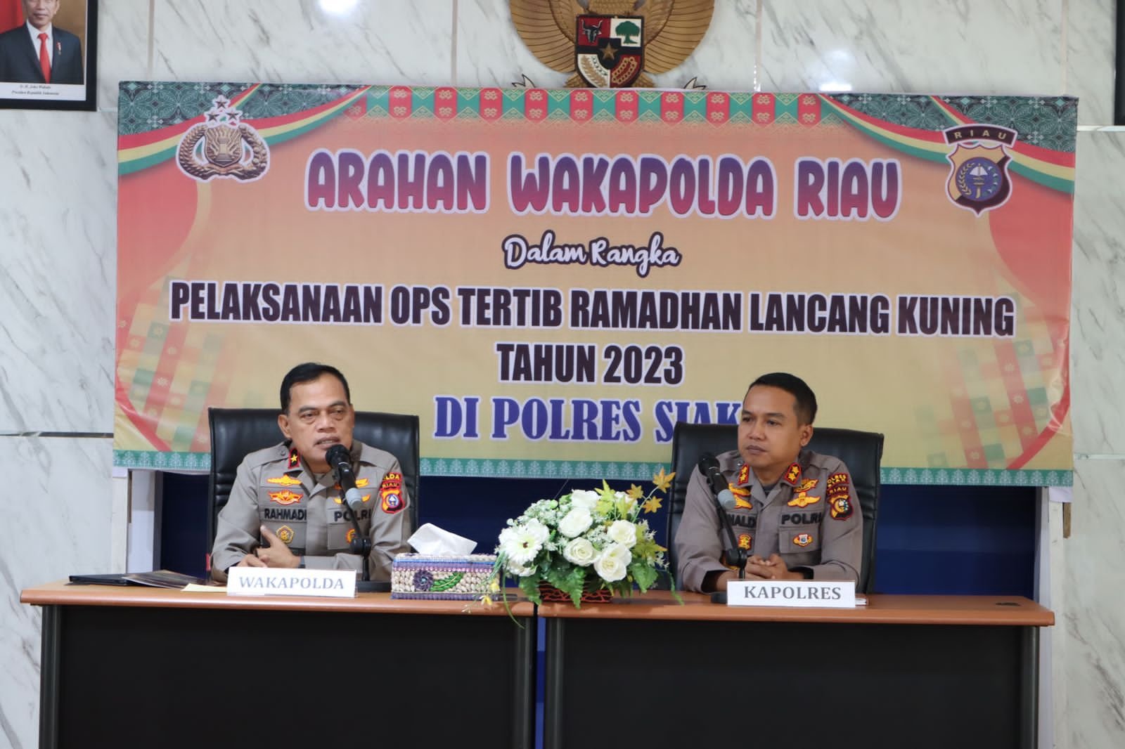 Dalam arahan nya Wakapolda Riau Brigjen Pol K. Rahmadi memberikan apresiasi kepada Kapolres siak yang telah aktif dalam penugasan yang diberikan pimpinan terutama dalam operasi tertib ramadhan ini.