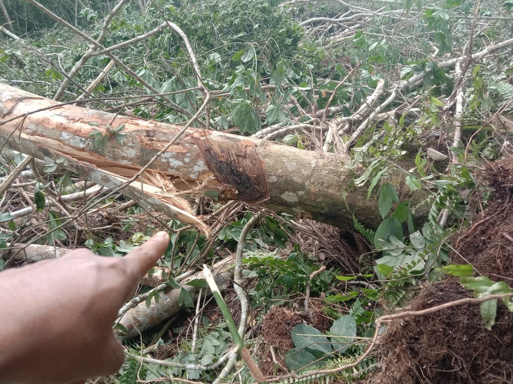 Pantau awak media dilapangan, tanaman karet milik warga Rawang Air Putih sekitar 1 hektar tumbang akibat dirusak oleh alat berat, dan juga kabel listrik yang melintasi kebun masyarakat itu juga jatuh ketanah akibat terkena ambruknya tanaman karet yang dirusak alat berat.