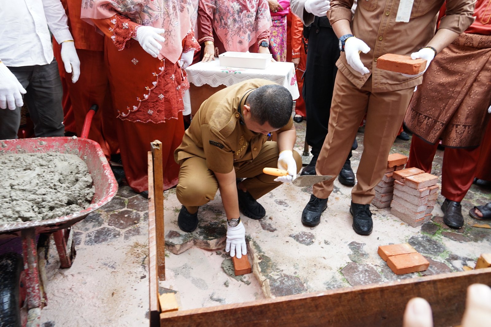 Selanjutnya proses peletakan batu pertama oleh Camat Mandau Riki Rihardi, S.STP., M.Si., Camat Bathin Solapan Muhammad Rusydy MR, S.STP., M.Si., dan perwakilan Kapolsek Mandau.