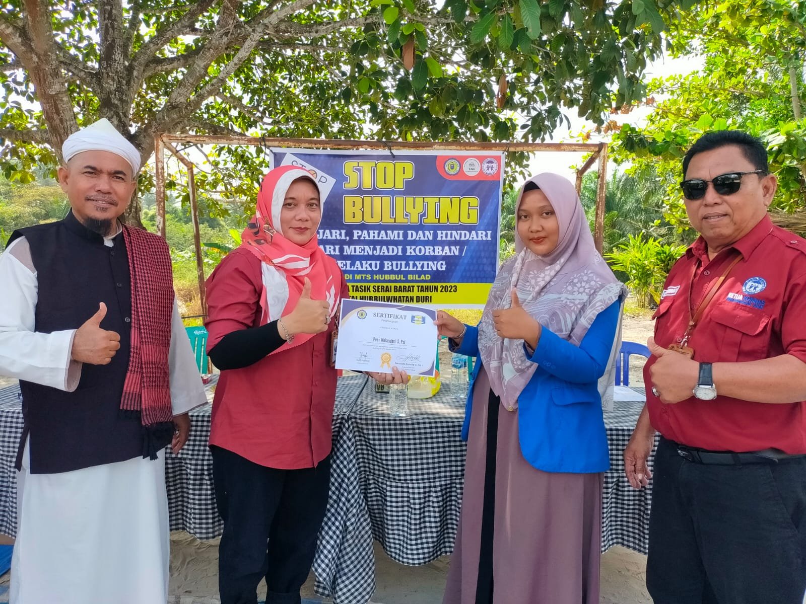 ” Dan harapan anak KKN STAI HUBBULWATHAN DURI terhadap kegiatan stop bullying di MTs Hubbul Bilad semoga pelaku bullying selama ini mengerti gimana bahaya nya bullying jika terus terjadi di sekolah, semoga prilaku bullying di sekolah MTs Hubbul bilad segera terhapus kan, dan seluruh guru dapat menyelesaikan masalah dengan kerja sama yang baik tanpa berpengaruh kecemburuan sosial..”