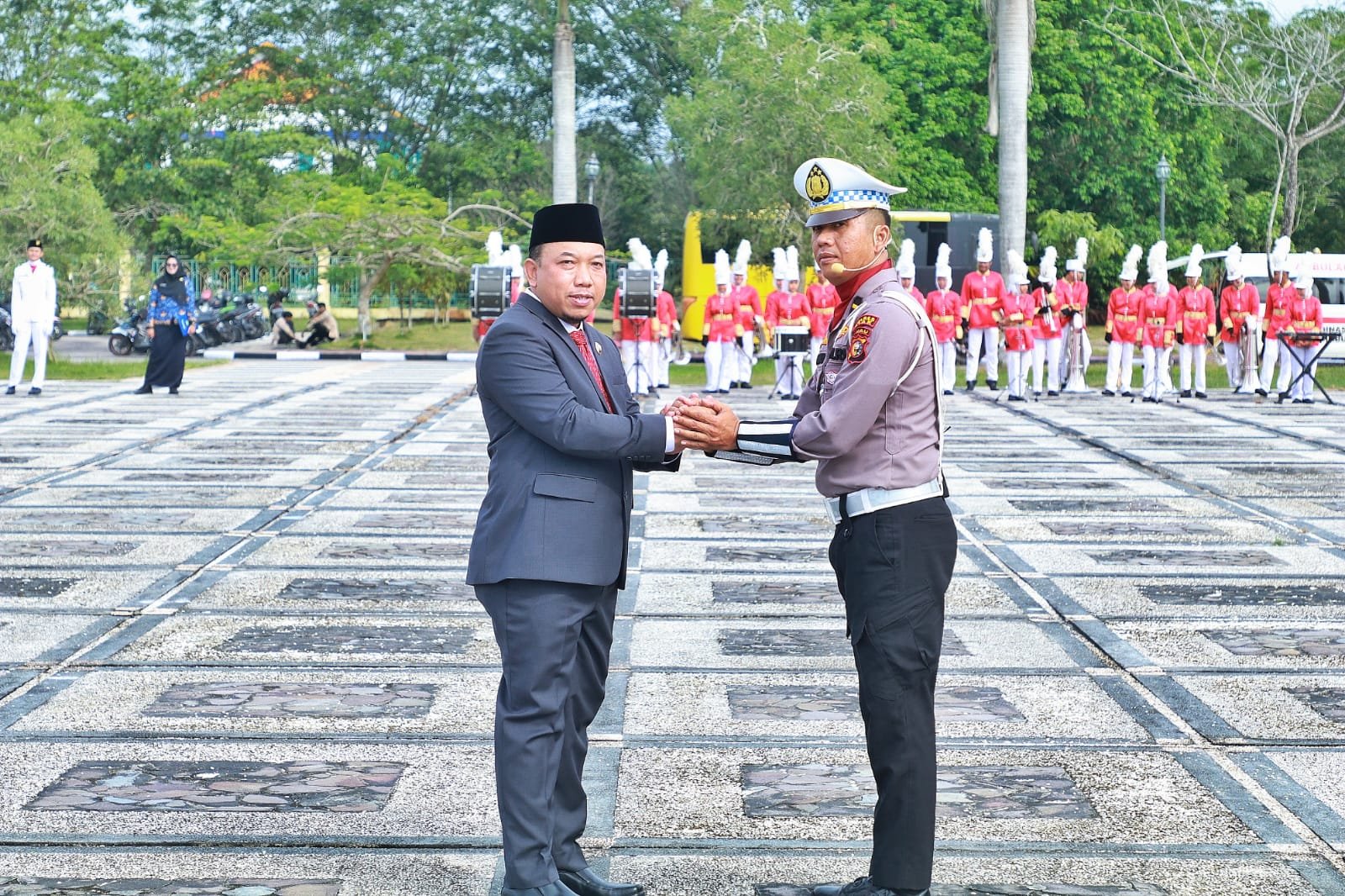 SIAK-Pemerintah Kabupaten Siak menggelar apel bersama,  memperingati Hari Lahir Pancasila  tahun 2024 berlangsung di lapangan Kantor Bupati Siak, Sabtu (01/6/2024).