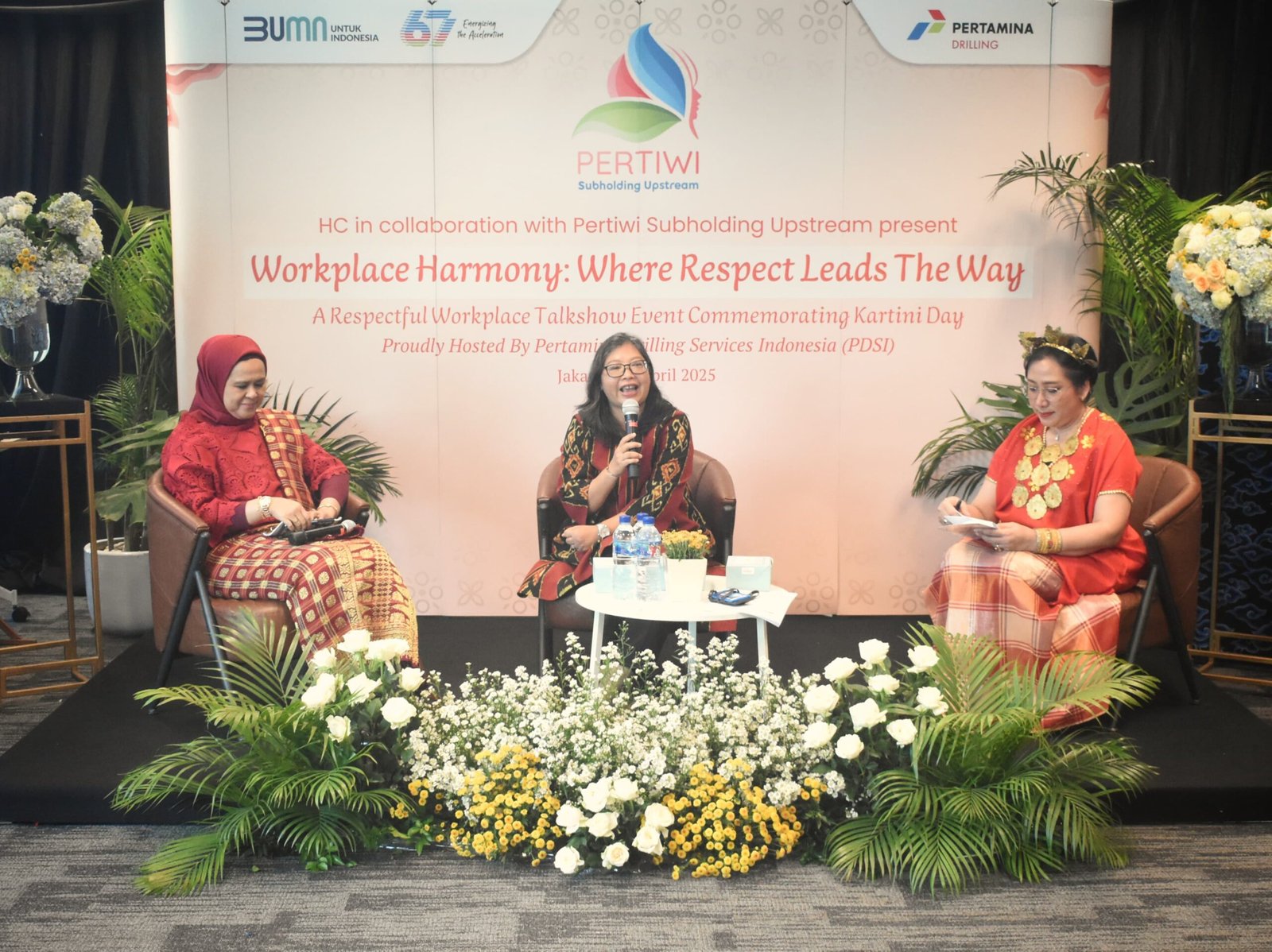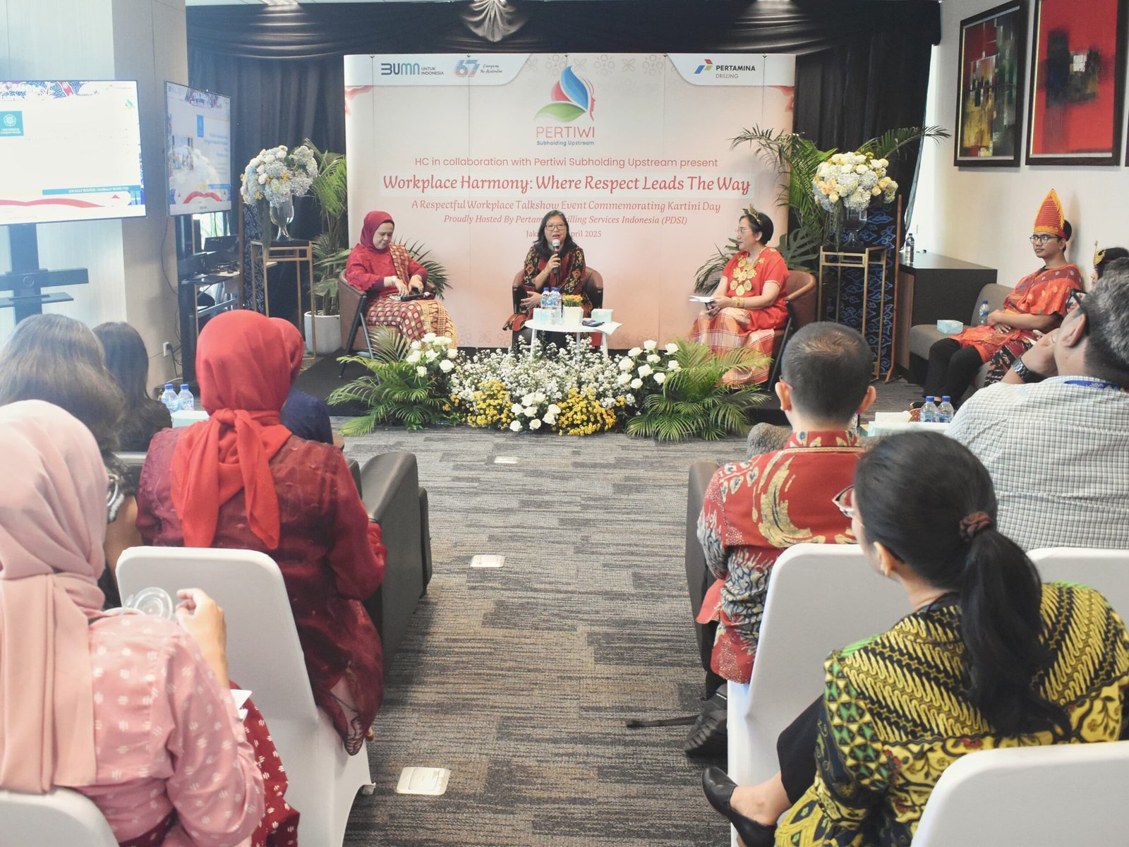 JAKARTA ; Dalam rangka memperingati Hari Kartini, Human Capital PT Pertamina Drilling Services Indonesia (Pertamina Drilling) berkolaborasi dengan Pertiwi PT Pertamina Hulu Energi (PHE) Subholding Upstream PT Pertamina (Persero) menggelar talk show bertajuk “Workplace Harmony: Where Respect Leads The Way – A Respectful Workplace Talk Show Event”.