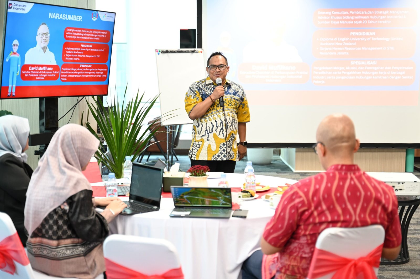 Workshop ini menghadirkan dua pembicara utama dari lingkup hubungan industrial nasional, yaitu Dhatun Kuswandari, Direktur Hubungan Kerja dan Pengupahan di Direktorat Jenderal Pembinaan Hubungan Industrial dan Jaminan Sosial Tenaga Kerja Kementerian Ketenagakerjaan RI, serta David Muflihano, Executive Chairman Perkumpulan Praktisi dan Profesional Hubungan Industrial Indonesia (P3HI).