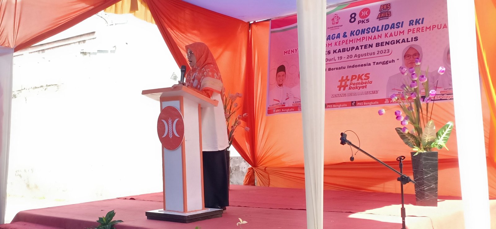 Acara dilanjutkan oleh penyampaian oleh Ketua RKI BPKK Provinsi Riau Hj Kasmidar S.Pd. Dalam penyampaiannya, beliau membakar semangat para kader untuk tetap bersemangat dalam memperjuangkan PKS di Kabupaten Bengkalis.