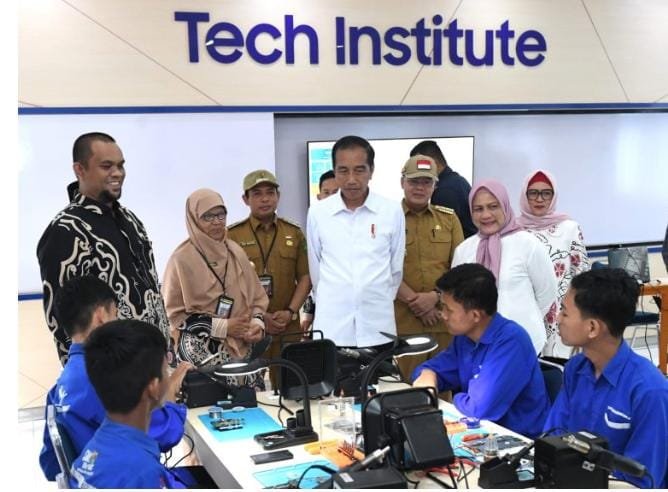 JAKARTA — Presiden RI Joko Widodo (Jokowi) beserta Ibu Iriana Jokowi meninjau aktivitas pembelajaran SMK Negeri 1 Bengkulu, Kota Bengkulu, Provinsi Bengkulu, pada Kamis (20/07/2023) sore. Dalam keterangannya usai peninjauan, Presiden menyampaikan apresiasinya terhadap program pembelajaran sekolah yang sejalan dengan kebutuhan dunia industri.