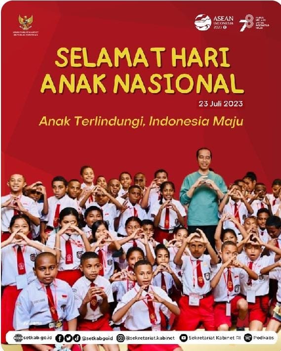 “Perlindungan dan kesempatan bagi anak untuk berkembang adalah pertaruhan masa depan bangsa,” ujar Presiden melalui pernyataan yang diunggah di akun Twitter pribadinya @jokowi, Minggu (23/07/2023).