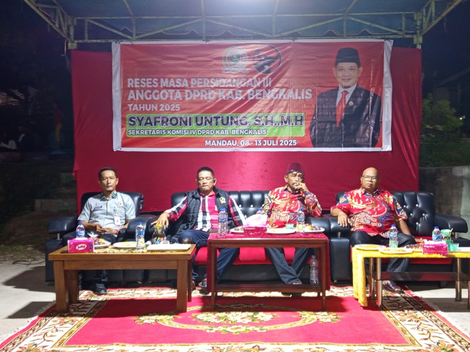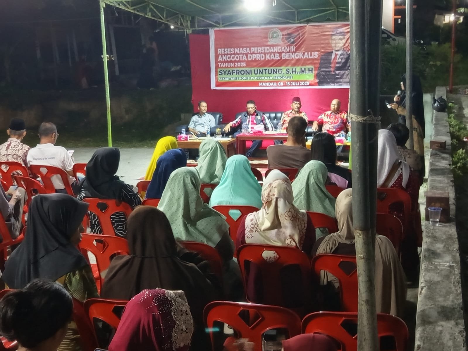 DURI – Ratusan warga Jalan Rokan Gang Anggrek RT 01 RW 23 Kelurahan Air Jamban begitu antusias menyambut kedatangan Sekretaris Komisi IV DPRD Kabupaten Bengkalis Syafroni Untung, S.H., M.H. Reses yang digelar pada Rabu malam (9/7) di halaman masjid Rahmatullah BTN Rokan Permai tersebut terlihat berbeda dari biasanya. Pasalnya, warga memadati kegiatan reses laki-laki yang akrab disapa Bang Roni ini.