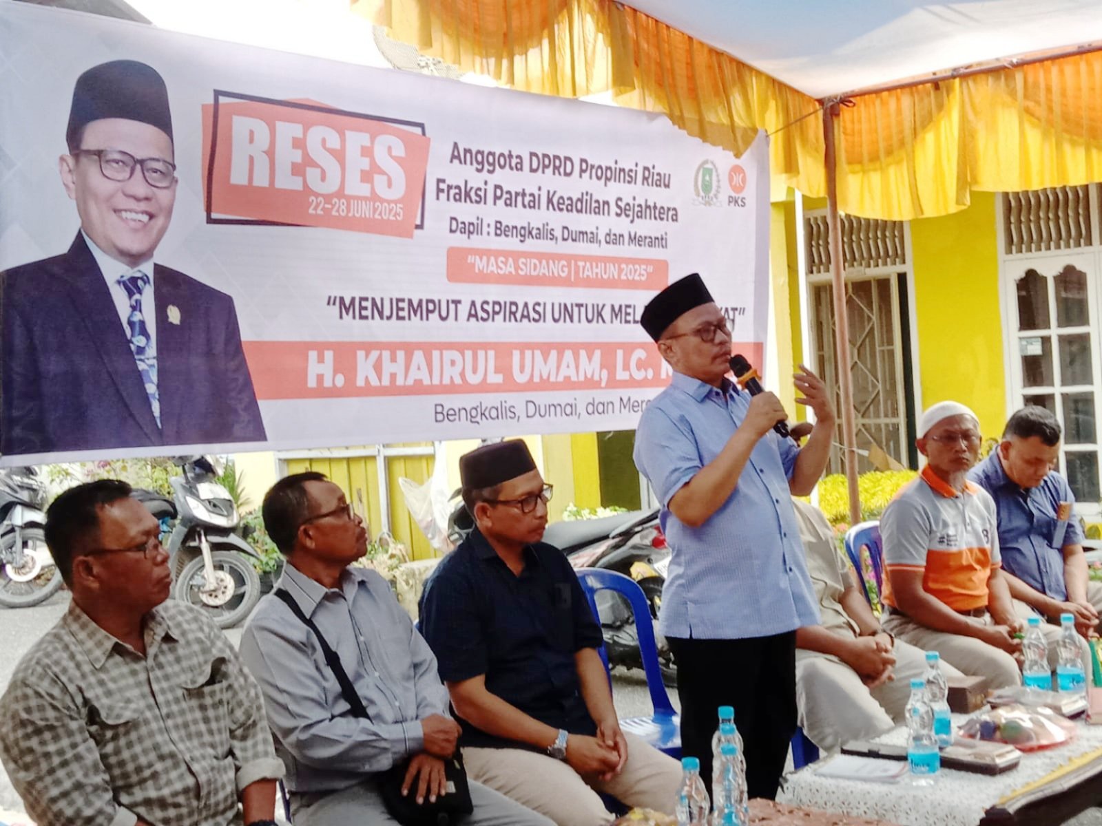 BATHIN SOLAPAN – Melanjutkan reses sebelumnya di Desa Buluh Manis, Anggota DPRD Provinsi Riau dari Partai PKS H. Khairul Umam, Lc,M.E.,Sy, kembali melakukan kegiatan reses di Perumnas Tahap I Blog 4 Desa Balai Makam, Kecamatan Bathin Solapan, Kabupaten Bengkalis.