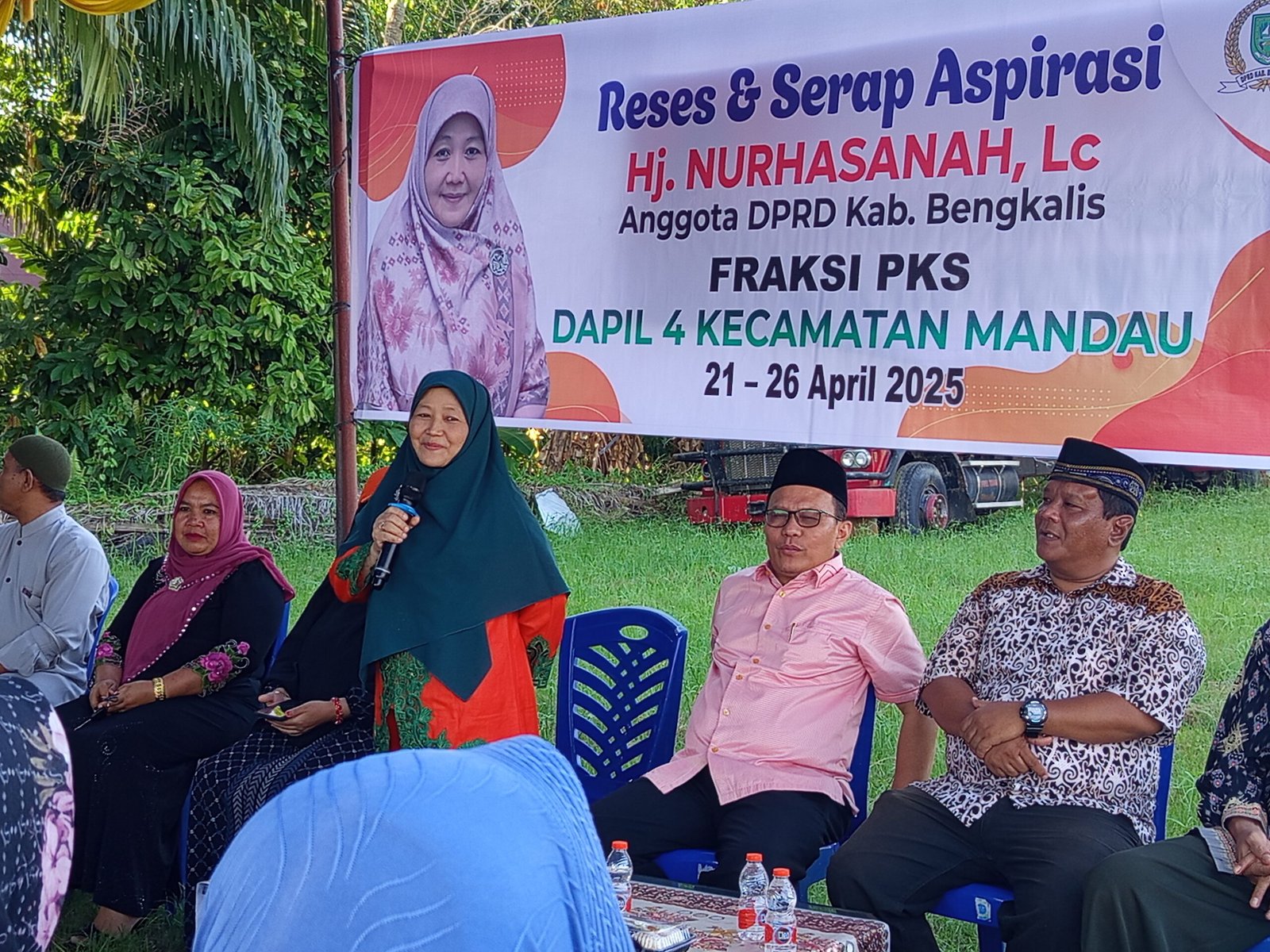 DURI – Hj. Nurhasanah, Lc yang merupakan anggota DPRD Kabupaten Bengkalis dari Partai PKS pada Jumat sore (25/4/25) melakukan kegiatan reses atau serap aspirasi masyarakat. Dimana kegiatan reses ini dilaksanakan di Jalan Cempaka RT 04 RW 11 Kelurahan Gajah Sakti Kecamatan Mandau.