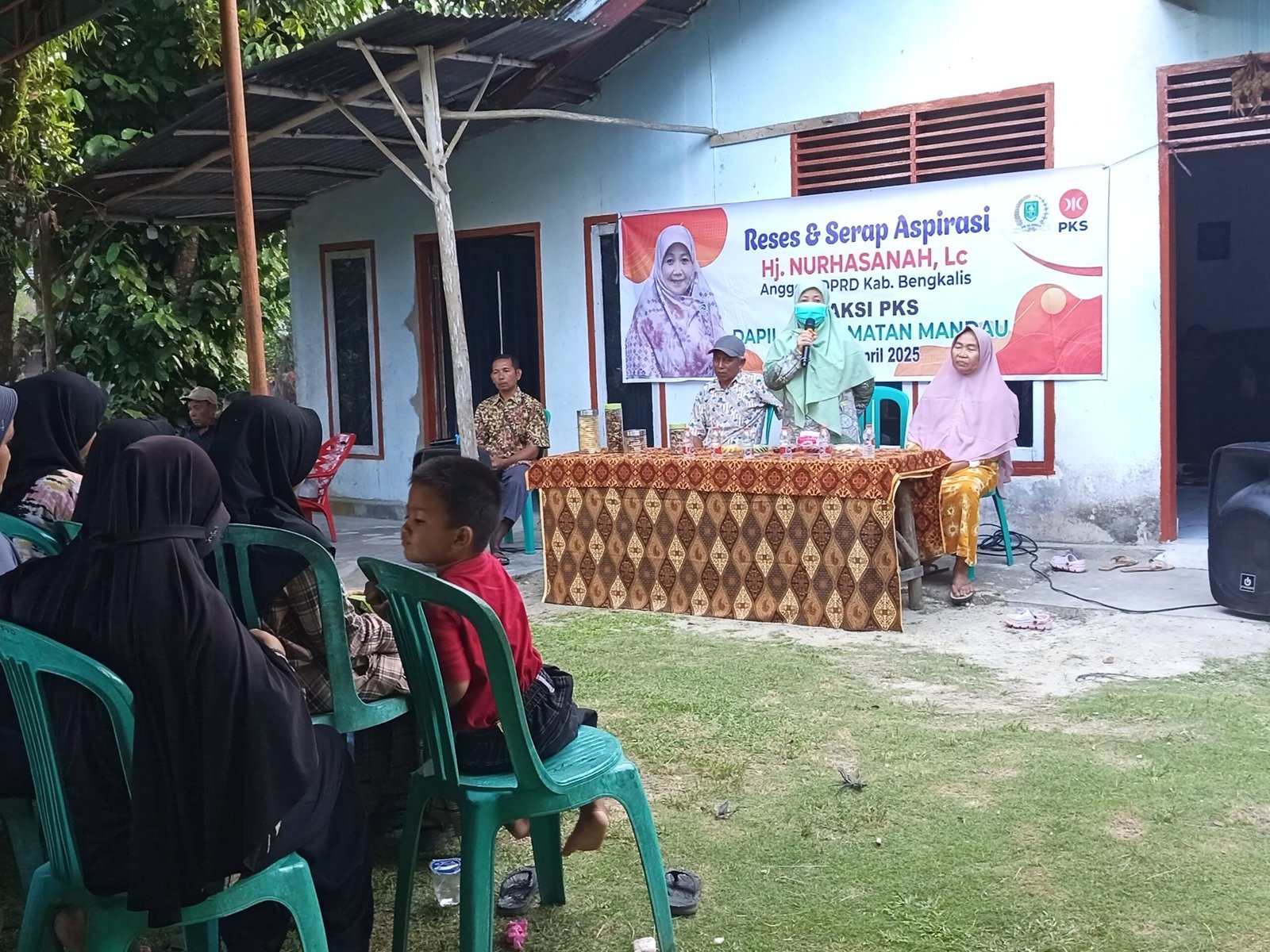 DURI – Berlokasi di rumah kediaman Wak Sukar di Jalan Sidodi KUD Kelurahan Pematang Pudu pada Selasa sore (22/4/25) Anggota DPRD Kabupaten Bengkalis dari Partai PKS Hj. Nurhasanah, Lc kembali melakukan kegiatan reses atau serap aspirasi di warga sekitar. Kehadiran istri dari anggota DPRD Provinsi Riau H. Khairul Umam., Lc., M.E., Sy disambut antusias warga.