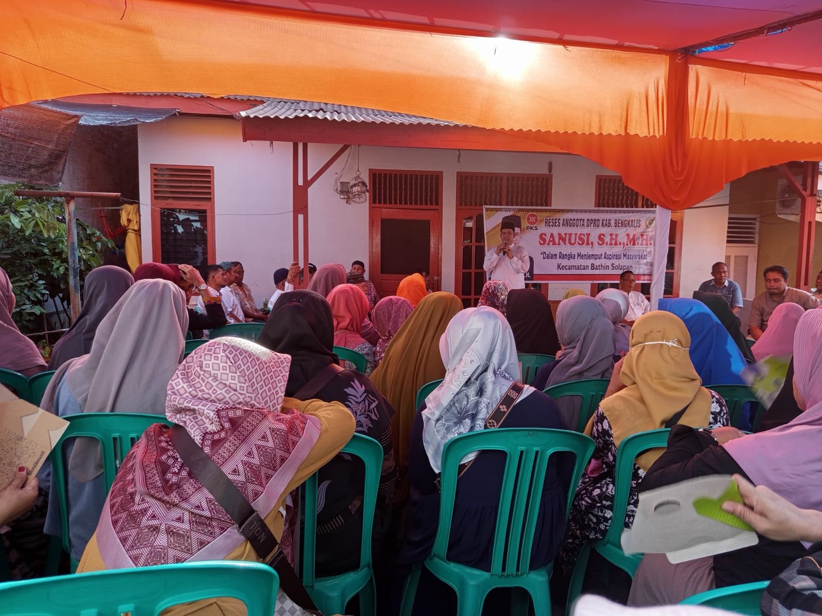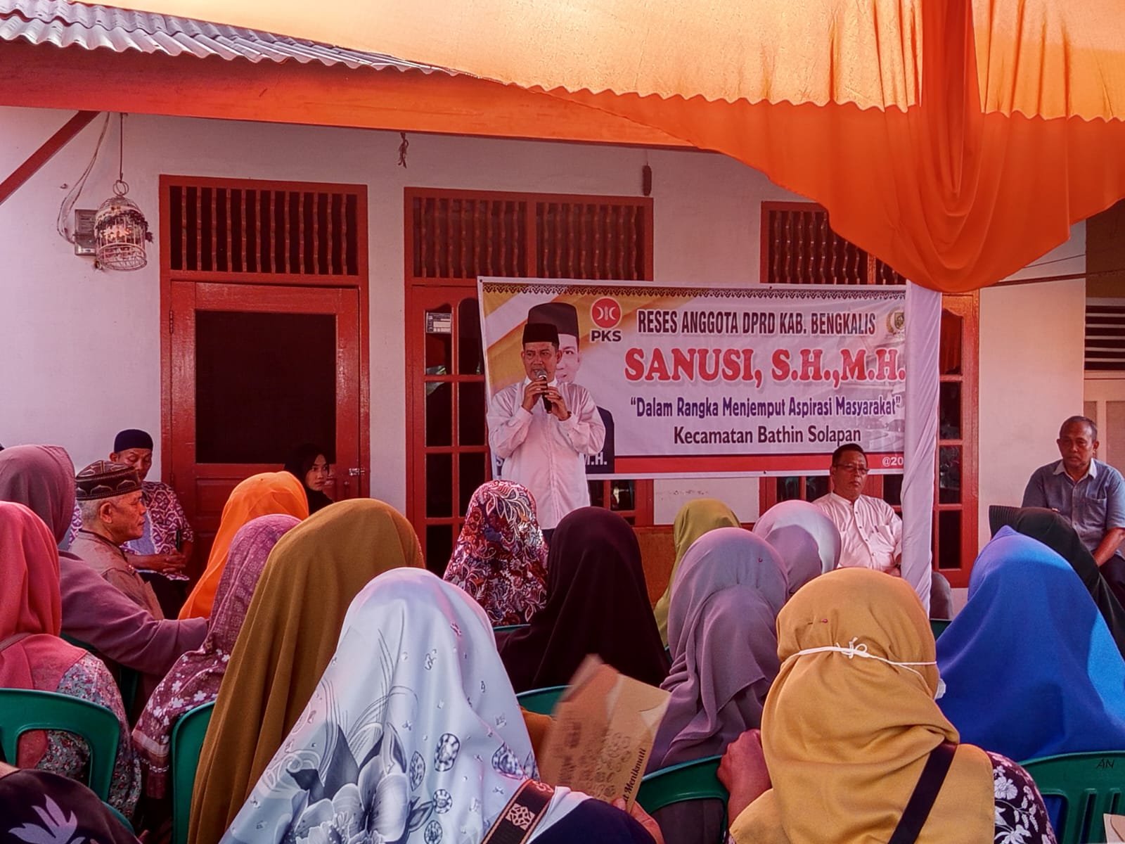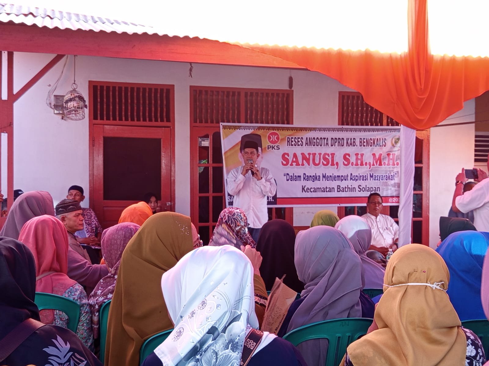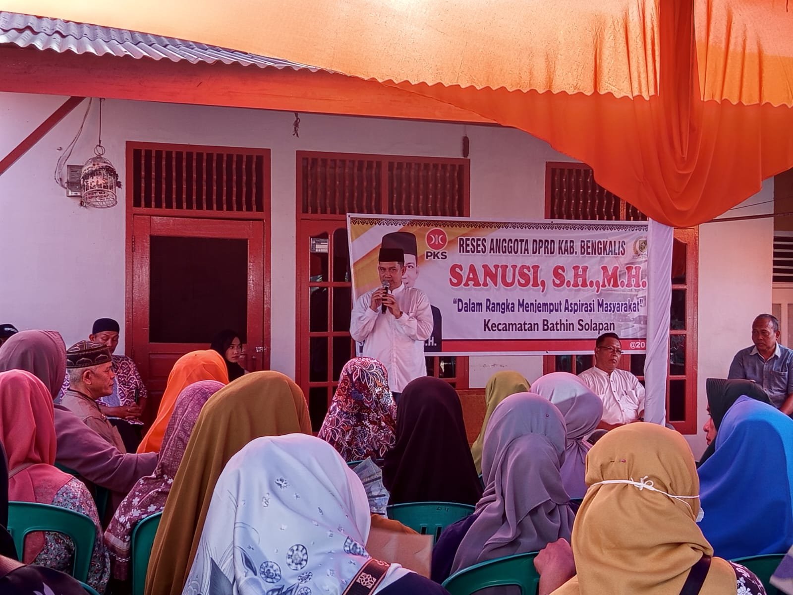 DURI – Ketua Komisi III DPRD Kabupaten Bengkalis dari Partai PKS Sanusi, S.H., M.H, atau lebih akrab disapa Yung Sanusi melakukan kegiatan reses atau serap aspirasi masyarakat di Kediaman Bapak Jasmin Perumahan Tambusai Tahap I Blok 6 No. 10 RT 01 RW 03 Desa Balai Makam Kecamatan Bathin Solapan. Kegiatan reses tersebut dimulai pada pukul 15.45 WIB Kamis sore (9/7).