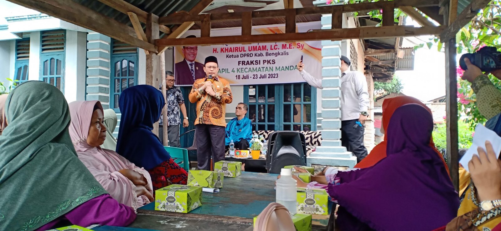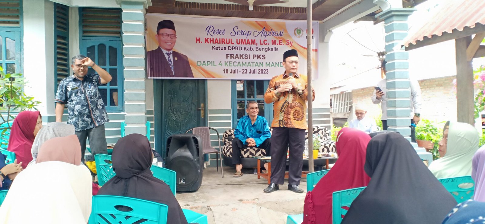 DURI – Ketua DPRD Kabupaten Bengkalis H. Khairul Umam, Lc., M.E.,Sy melakukan kegiatan serap aspirasi atau reses perdananya. Dimana dalam reses perdana ini berlokasi di Jalan Mulia Gang Sepakat RT 02 RW 08 Kelurahan Gajah Sakti Kecamatan Mandau Kabupaten Bengkalis.
