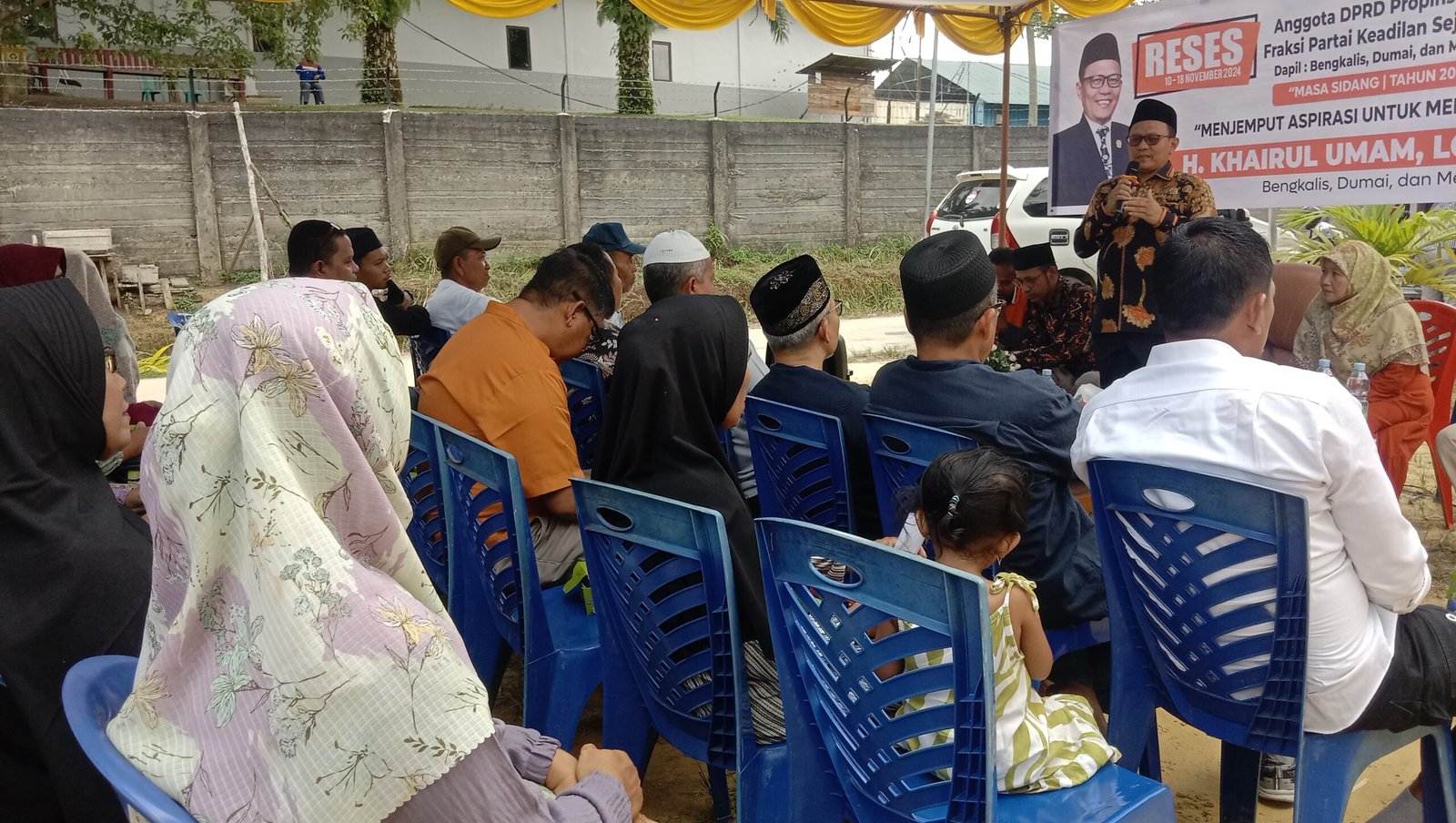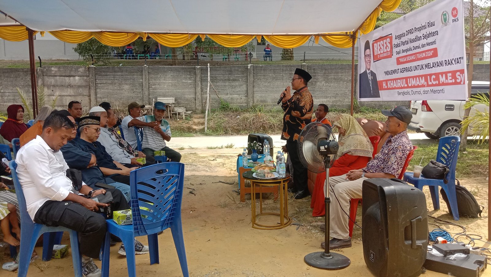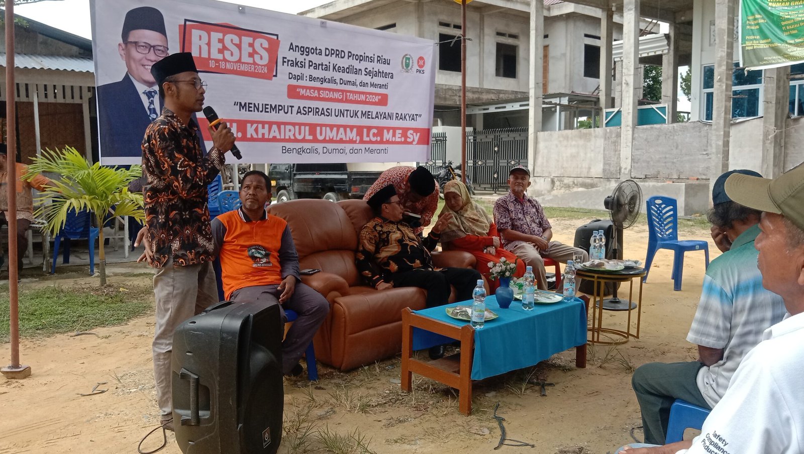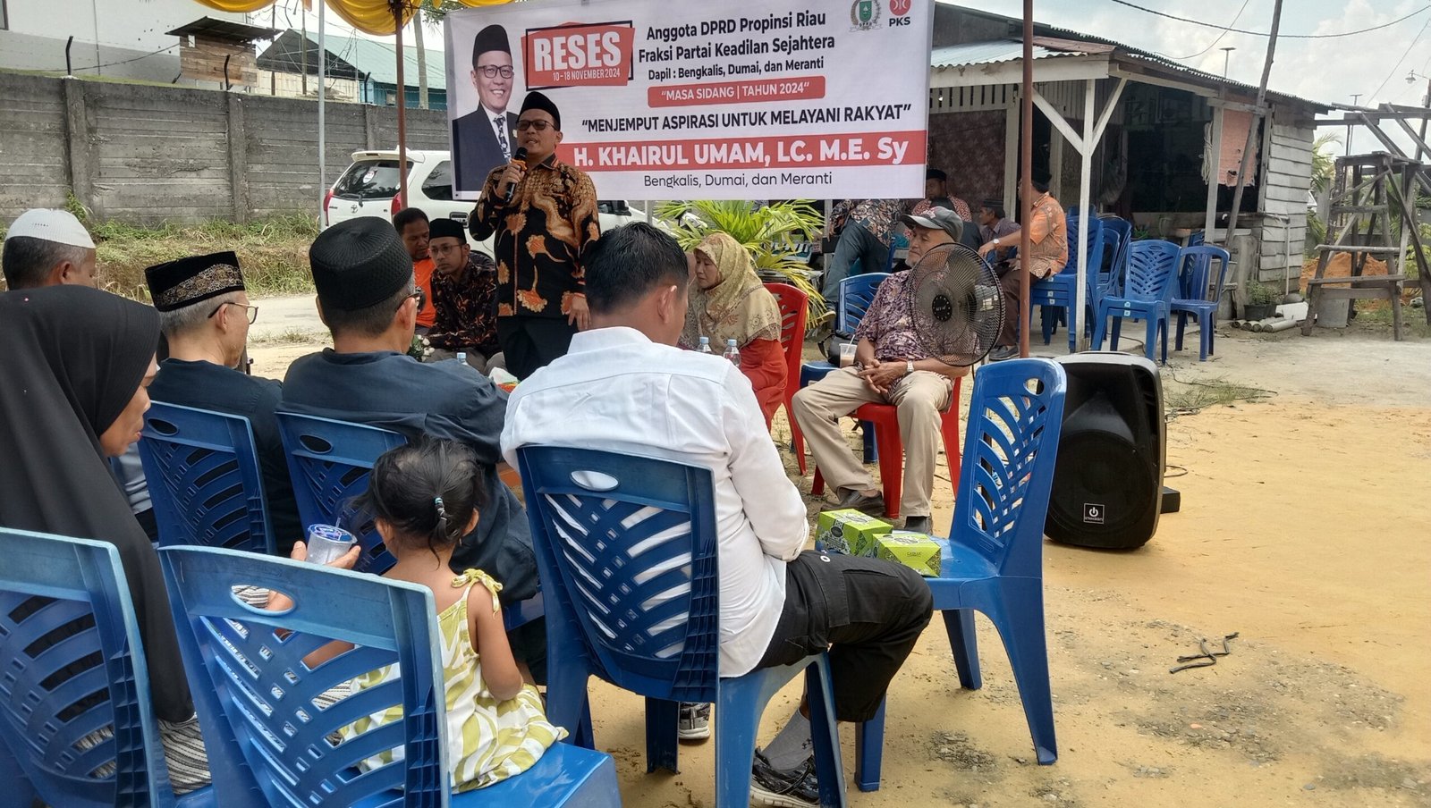 DURI – Anggota DPRD Provinsi Riau dari partai PKS H. Khairul Umam, Lc., M.E., Sy melaksanakan kegiatan reses perdana di Gang Nasional Km.3 Rangau RT 06 RW 10 Kelurahan Pematang Pudu, Kecamatan Mandau Kabupaten Bengkalis.