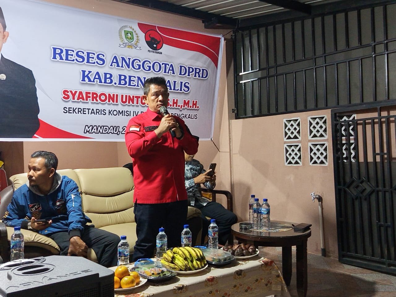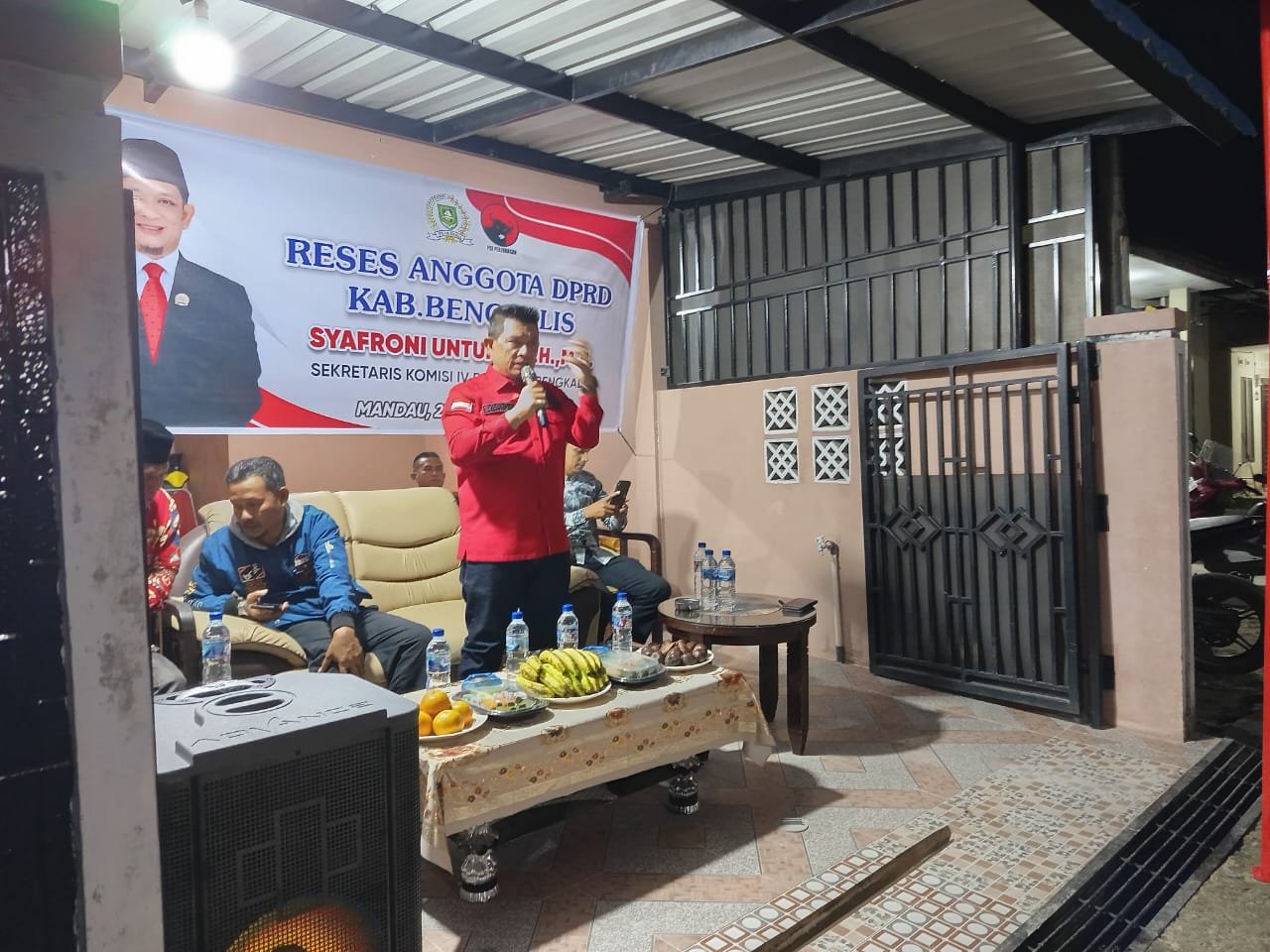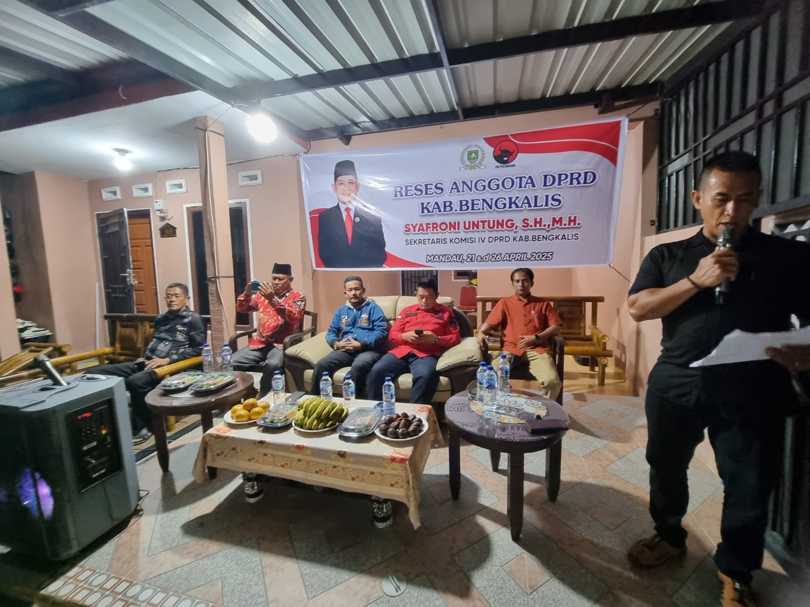 DURI – Berlokasi di Jalan Gelora Abadi RT 8 RW 24 Kelurahan Air Jamban Kecamatan Mandau pada Rabu malam (23/4/25) reses atau serap aspirasi anggota DPRD Kabupaten Bengkalis dari Partai PDIP Syafroni Untung, S.H., M.H digelar. Hadir juga dalam kegiatan reses ini, yaitu Lurah Air Jamban melalui Sekretaris Kelurahan yaitu Dedi Dahmudi, tokoh masyarakat dan warga yang hadir dalam kegiatan tersebut.
