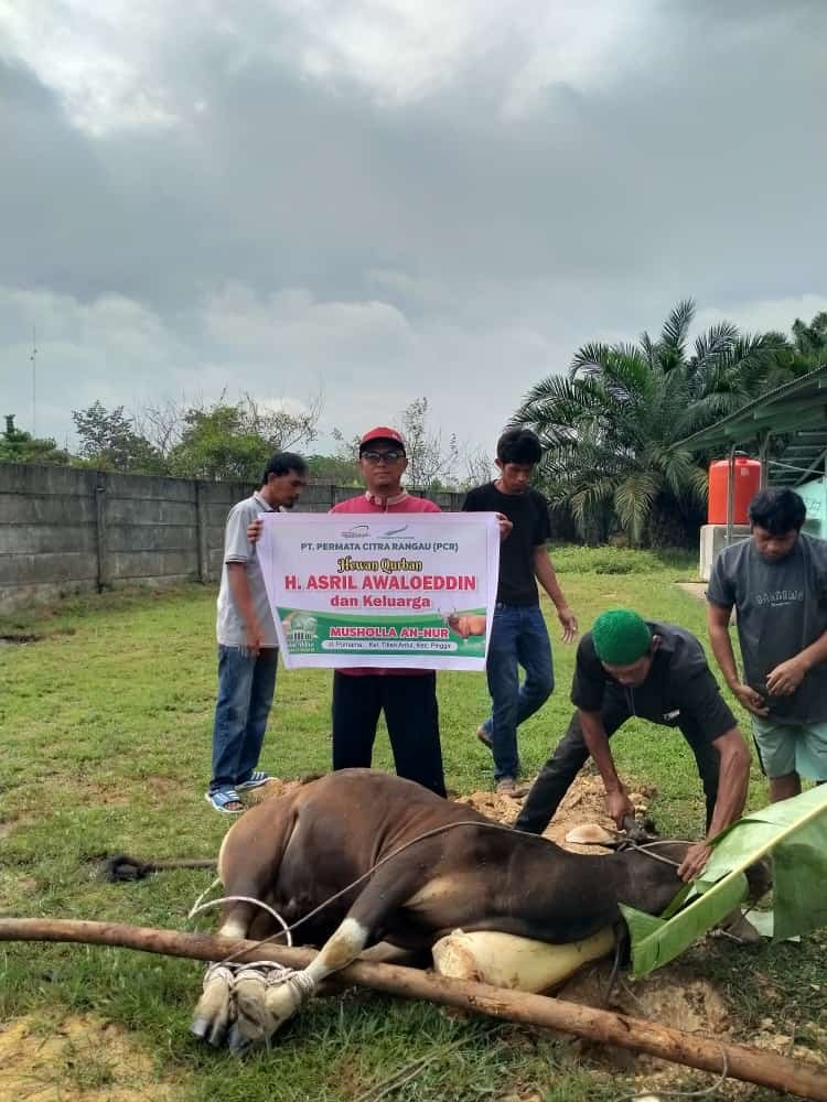 DURI – PT. Permata Citra lestari (PT. PCR) yang terletak di Jalan Gajah Mada Km.3 Kelurahan Talang Mandi Kecamatan Mandau Kabupaten Bengkalis dalam momentum Hari Raya Idul Adha melakukan kegiatan pemotongan hewan kurban. Dimana total jumlah hewan kurban pada tahun ini berjumlah 2 ekor sapi dan 2 ekor kambing. Dimana diberikan kepada Masjid Anwar, sebanyak 1 ekor sapi, dan 1 ekor sapi untuk karyawan PT. PCR dan 2 ekor kambing untuk Masjid Al Hidayah dan Masjid Al-Ikhlas.