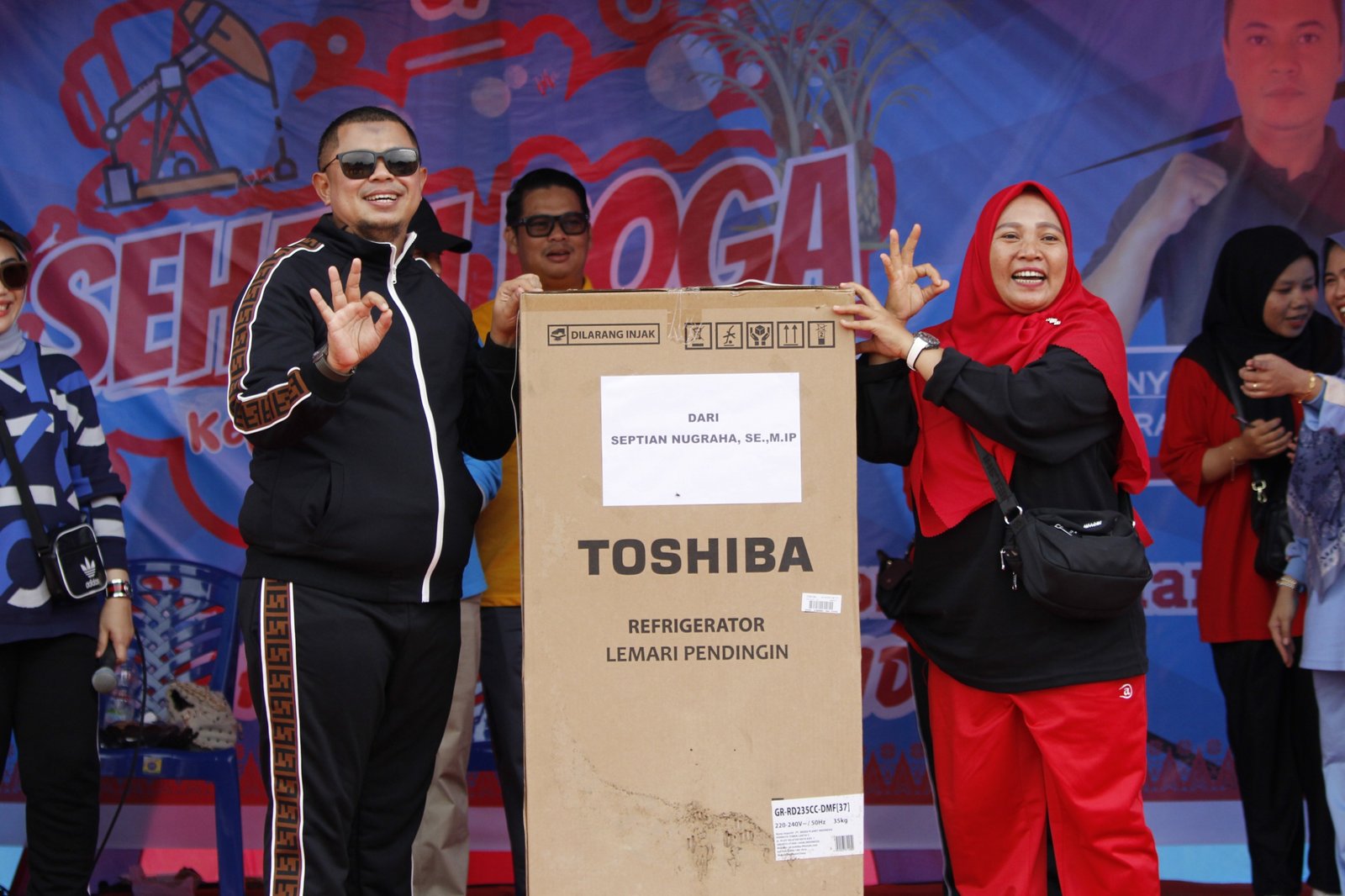Kegiatan dilanjutkan dengan senam bersama dan ditutup dengan penyerahan doorprize yang diberikan oleh Bupati Bengkalis Ibu Kasmarni, S.Sos., M.MP., Ketua DPRD Kabupaten Bengkalis Bapak Septian Nugraha, S.E., M.IP., dan Camat Mandau Riki Rihardi, S.STP., M.Si., tampak kegembiraan diraut wajah masayarakat Kelurahan Talang Mandu karena kegiatan berjalan dengan lancar dan aman.