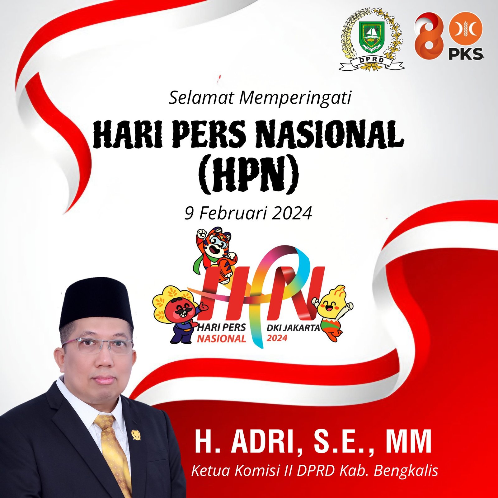 Selamat Memperingati Hari Pers Nasional H. Adri, S.E., MM (Ketua Komisi II DPRD Kabupaten Bengkalis)