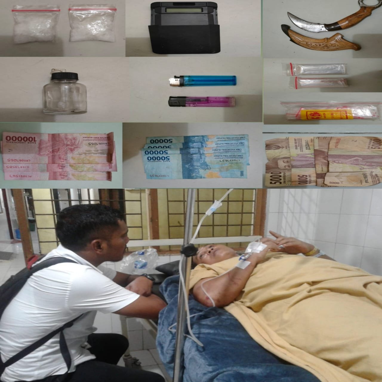 Adapun barang bukti yang diamankan dalam penangkapan tersebut yakni dua paket sedang sabu-sabu yang dibungkus lakban berwarna merah muda, satu buah alat hisap bong sabu, dua pak paper klip bening, satu buah kaca pirex, dua buah mancis, satu buah timbangan digital, satu buah senjata tajam pisau karembit, satu buah tas samping merk, satu buah Handphone Android merk Champion, tiga unit sepeda motor dengan merk : Suzuki satria FU No.Pol BM 5371 FB, Honda Genio tanpa Nopol dan Honda Revo tanpa Nopol.