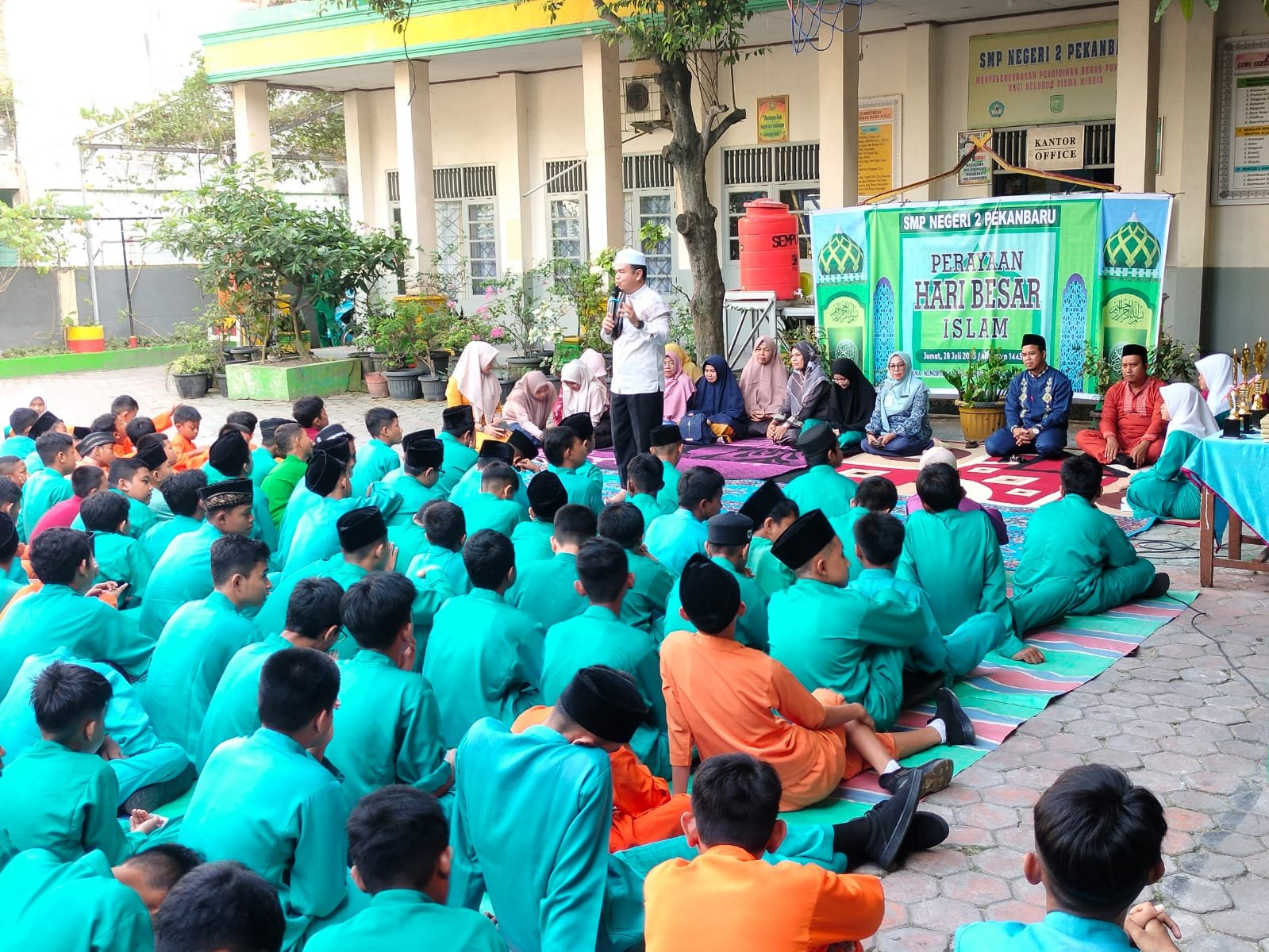 PEKANBARU – Kepala Sekolah, Majelis Guru dan pegawai SMPN 2, melaksanakan puncak peringatan Hari besar Islam 1 Muharram dan Hari Anak Nasional Tahun 2023, sekaligus penyerahan bantuan dan hadiah kepada siswa yang berhak menerima, pada Jumat (28/07/2023) di Lapangan SMPN 2 Jalan Moh Yamin Pekanbaru.